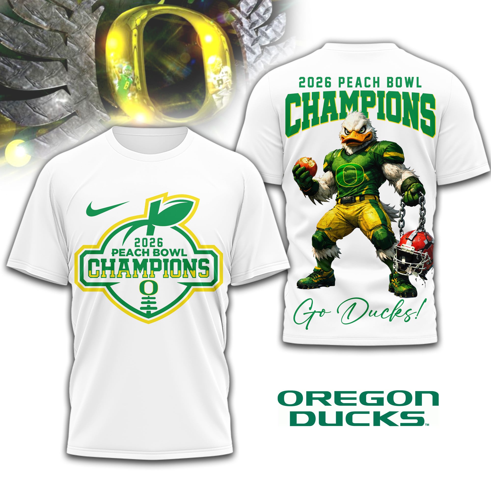 Oregon Ducks | Premium NCAA 2026 Peach Bowl Champions 3D Shirt