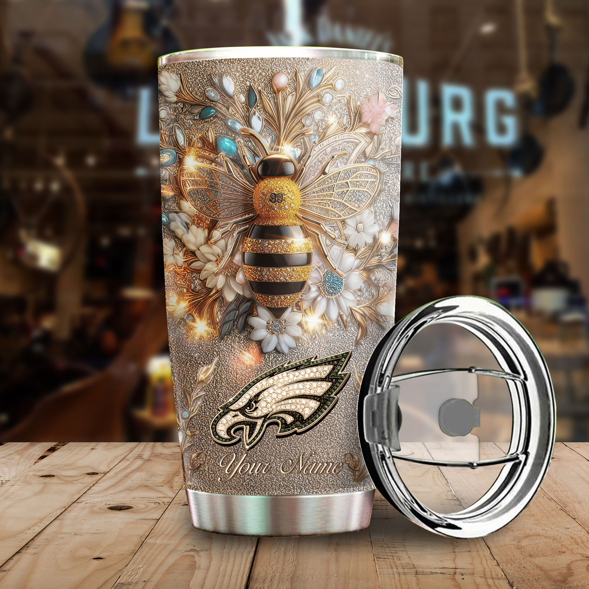 Categories: NFL, Philadelphia Eagles, Premium NFL Bling Bee Tumbler TD