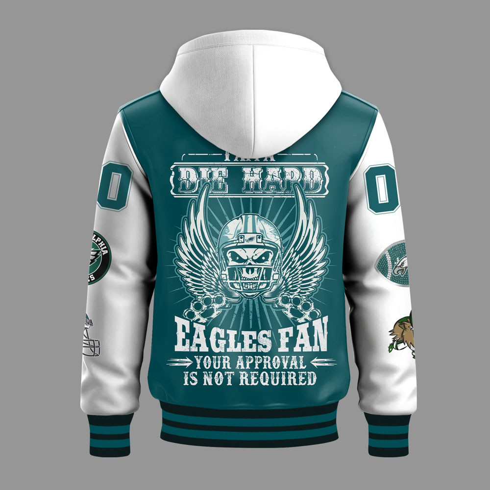 Categories: NFL, Philadelphia Eagles, Premium NFL Die Hard Fan Hooded Baseball Jacket