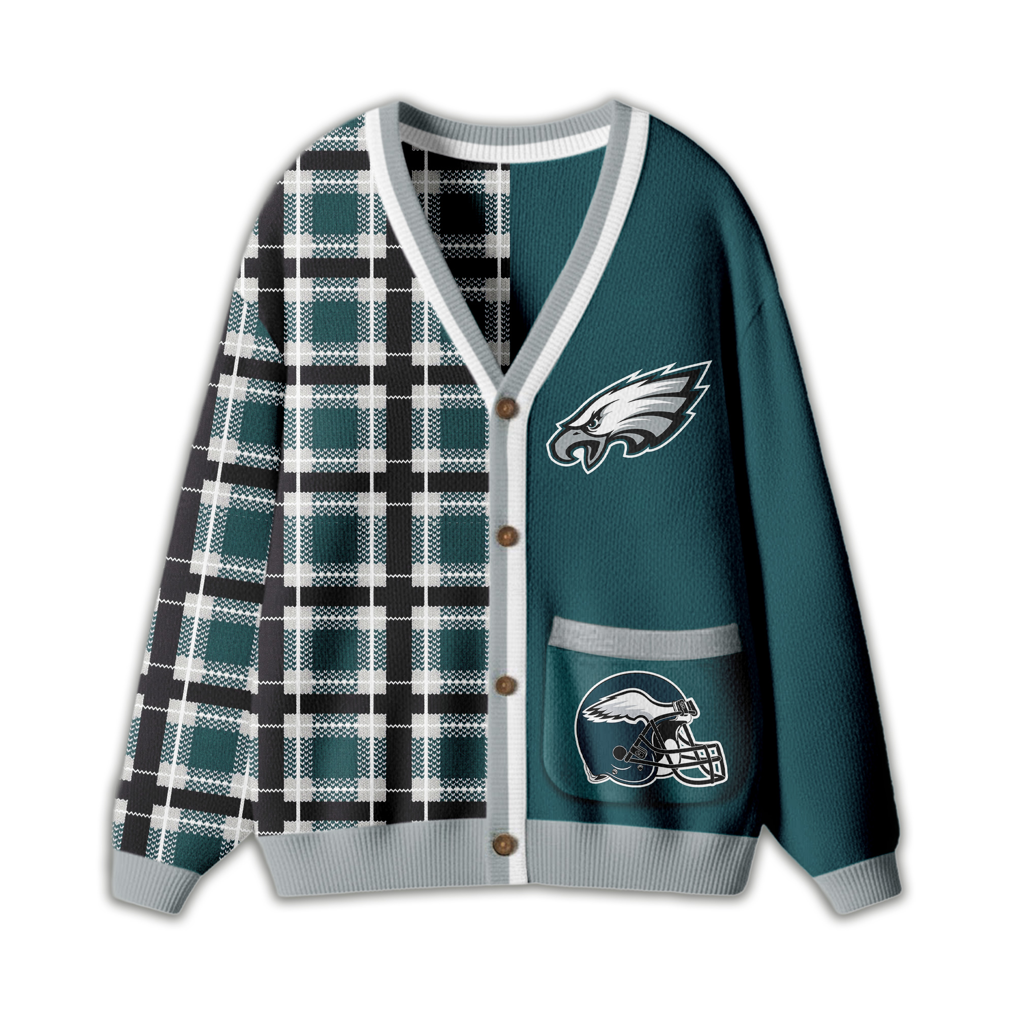 Philadelphia Eagles | Premium NFL Game Day Patchwork Cardigan with Printed Pocket Design