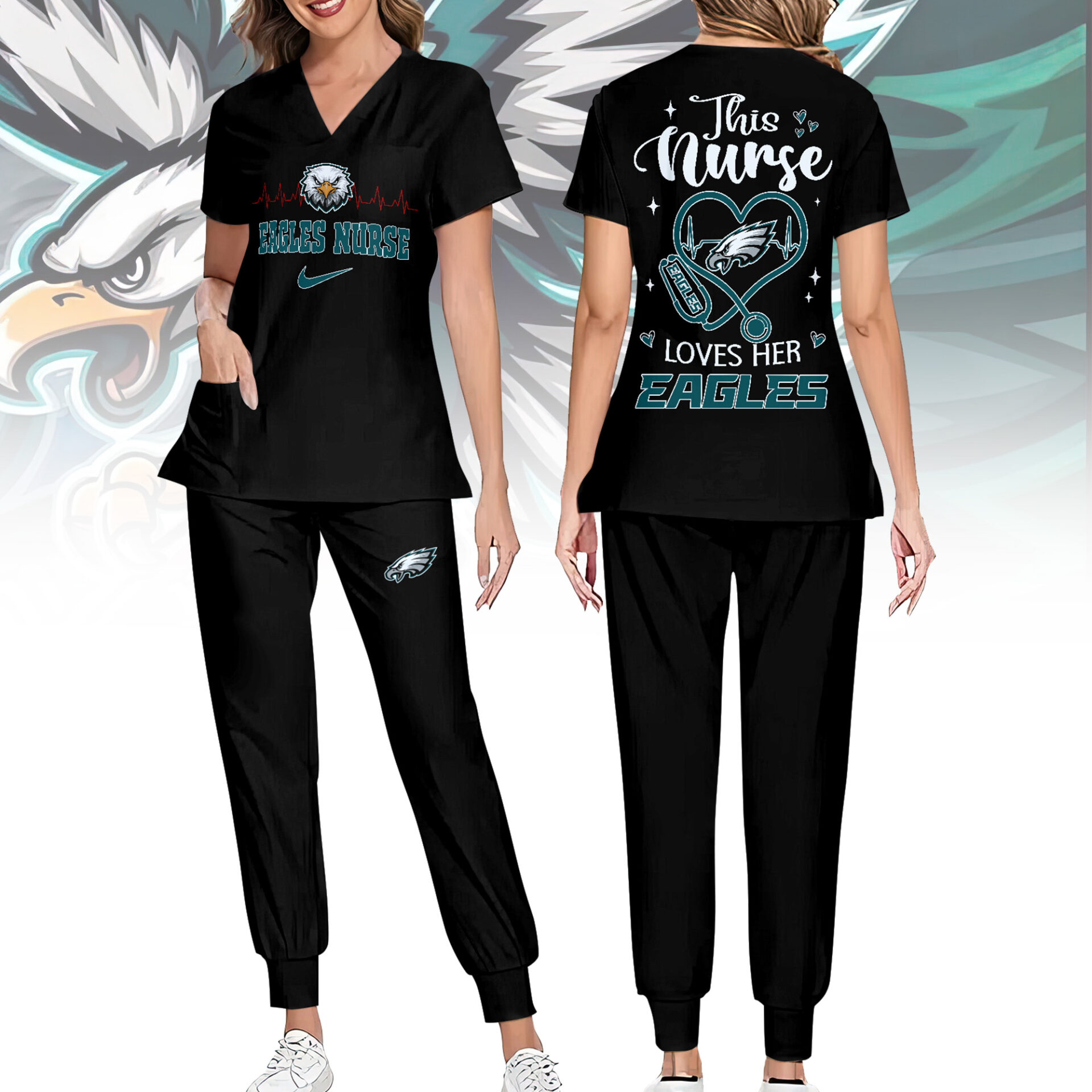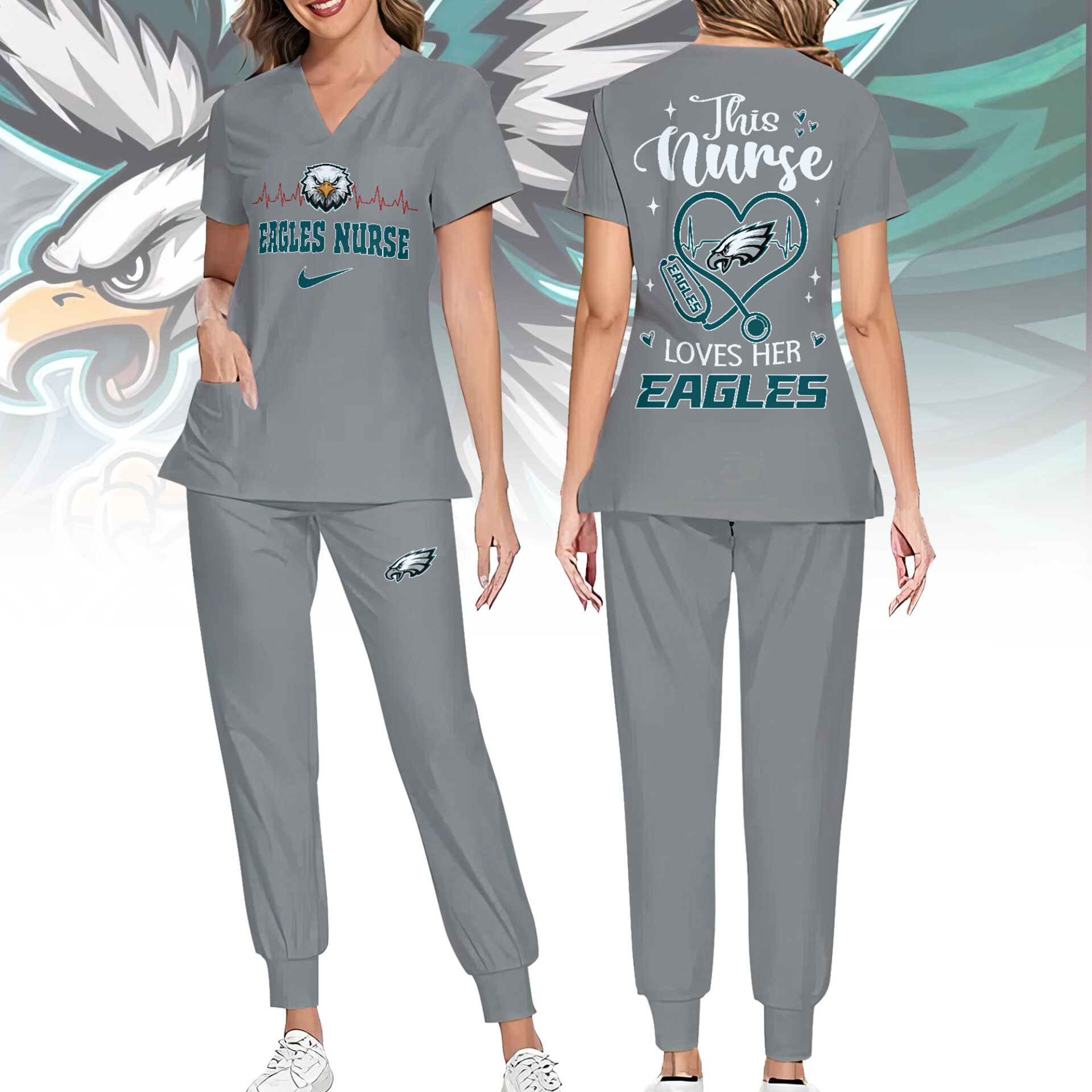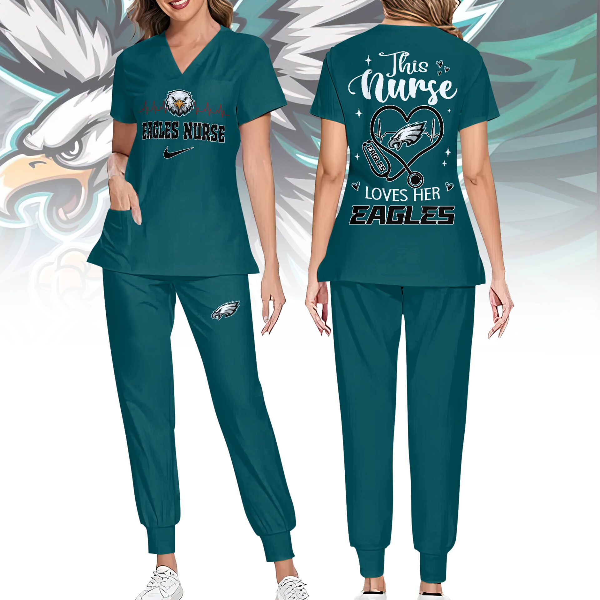 Philadelphia Eagles | Premium NFL Nurse Appreciation Stretch V-Neck Scrub Top And Jogger Pant