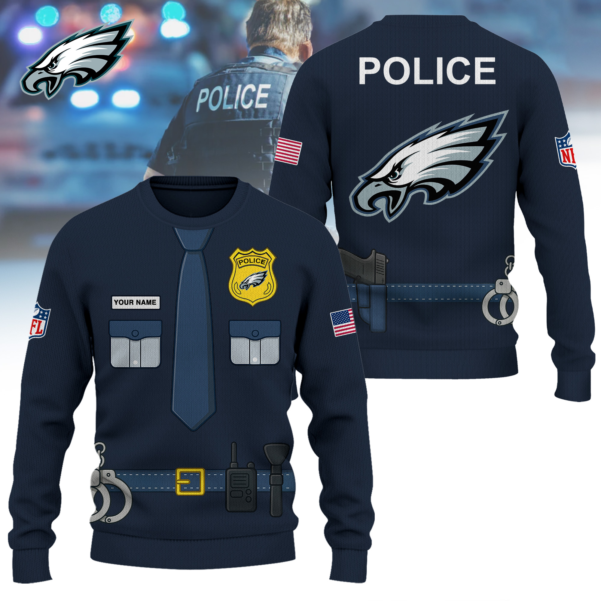 - This item: Philadelphia Eagles | Premium NFL Police Costume 3D Hoodie$27.95 – $49.95Price range: $27.95 through $49.95