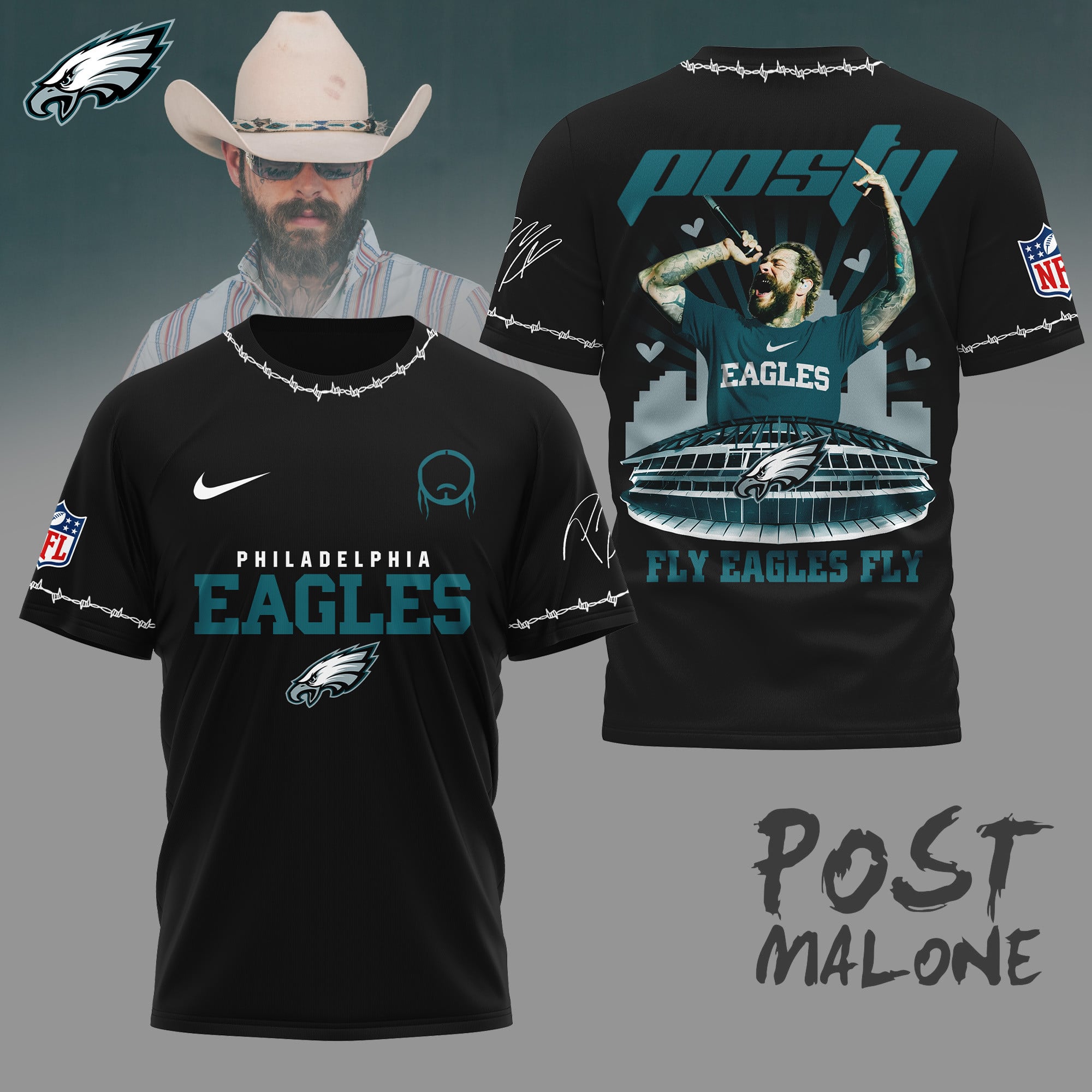 Philadelphia Eagles | Premium NFL Post Malone Fan 3D Shirt