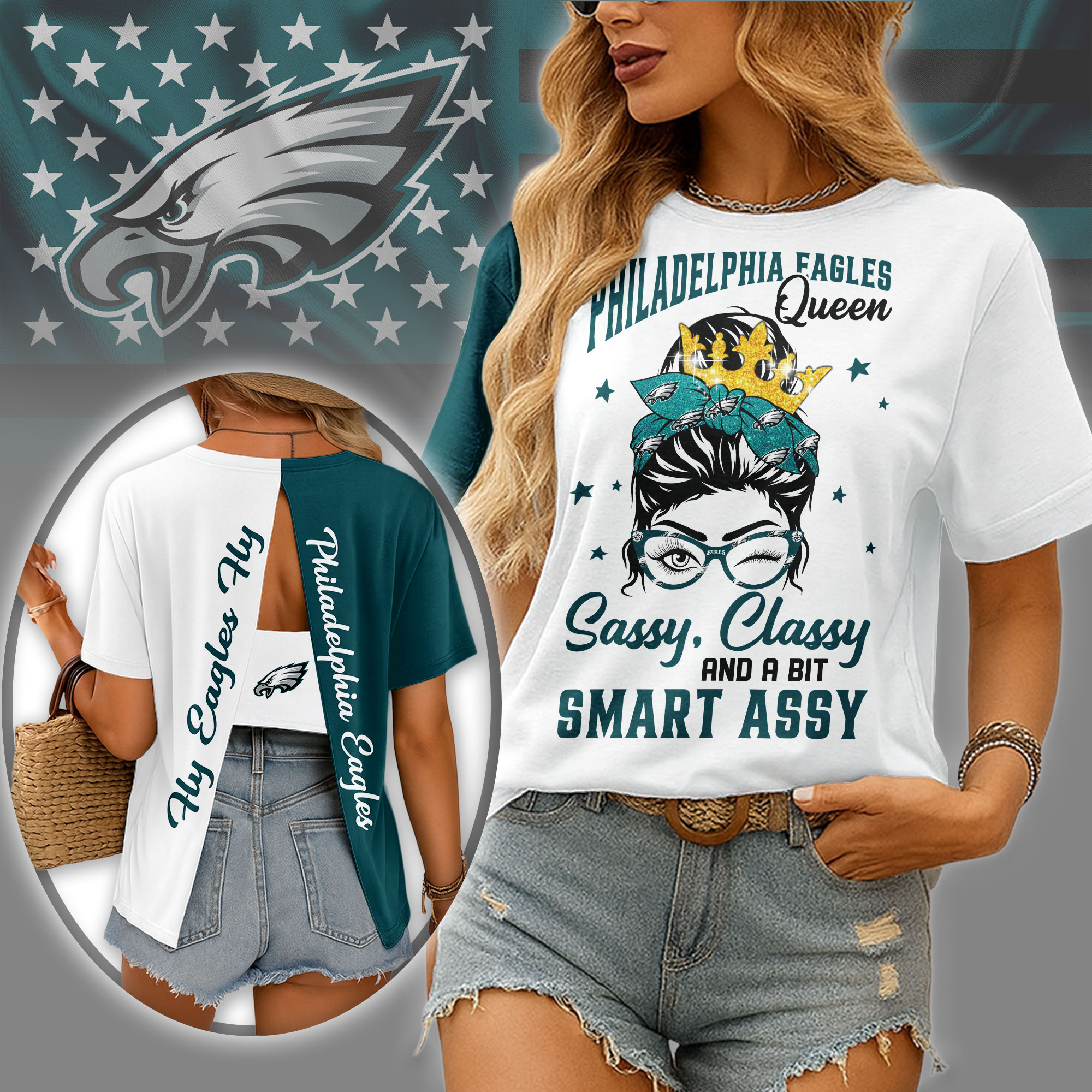 Philadelphia Eagles | Premium NFL Sassy Classy Hollow-out Backless T-shirt