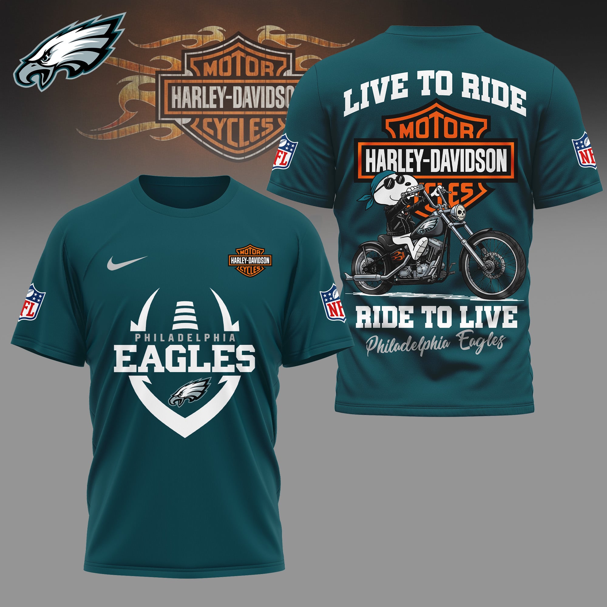 Philadelphia Eagles | Premium NFL Snoopy Harley Davidson 3D Shirt