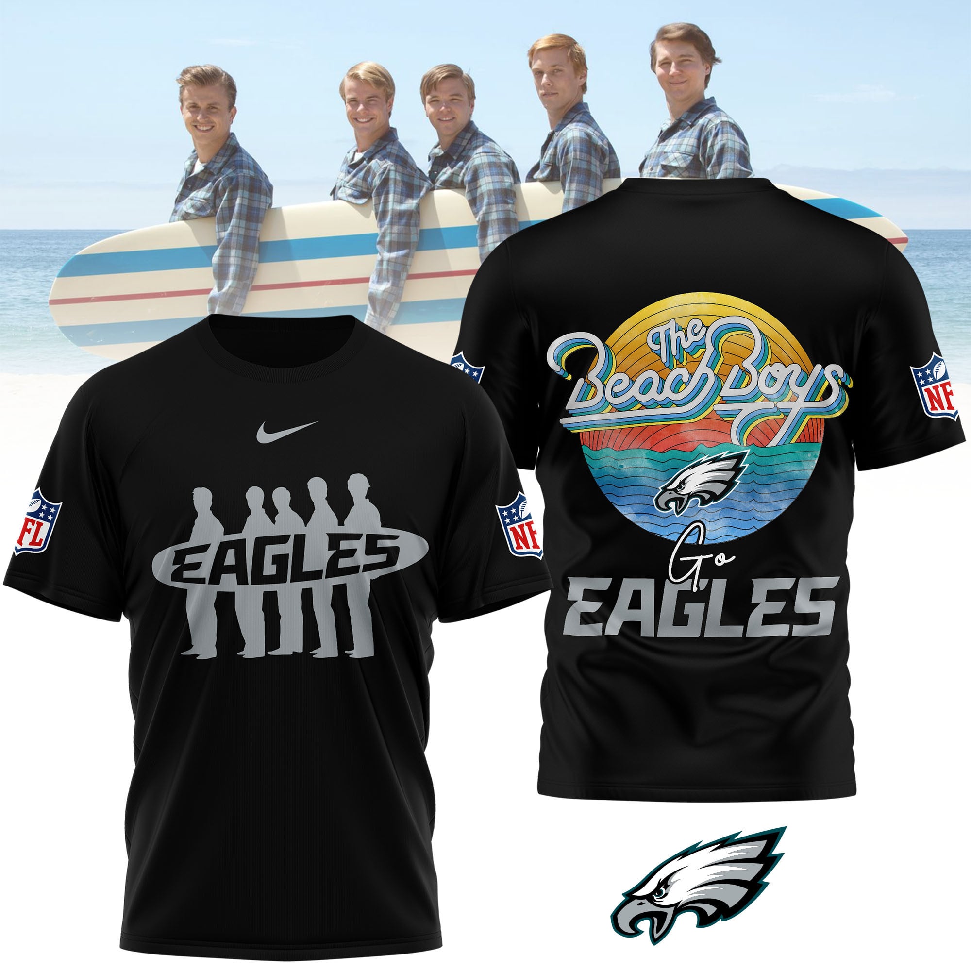 - This item: Philadelphia Eagles | Premium NFL The Beach Boys 3D Shirt Original price was: $32.95.$27.95Current price is: $27.95.