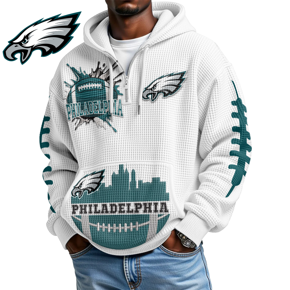 Philadelphia Eagles | Premium NFL Waffle Zipper Long Sleeve Hooded Sweatshirt