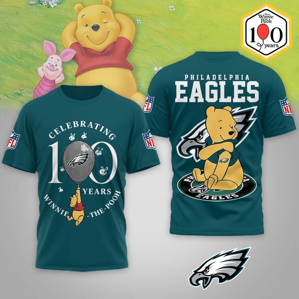 Philadelphia Eagles | Premium NFL Winnie The Pooh 100th Anniversary 3D Shirt