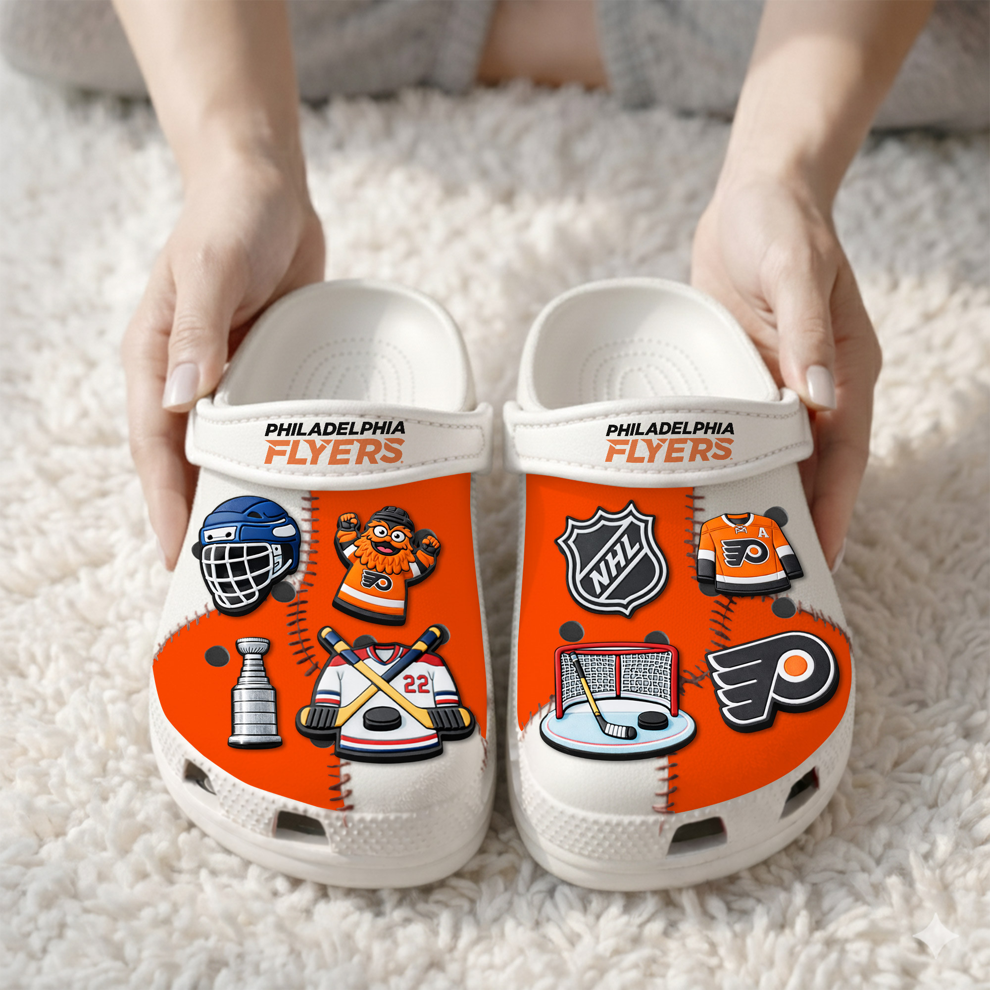 - This item: Philadelphia Flyers | PREMIUM NHL CLOGS WITH CHARMS Original price was: $119.99.$74.99Current price is: $74.99.