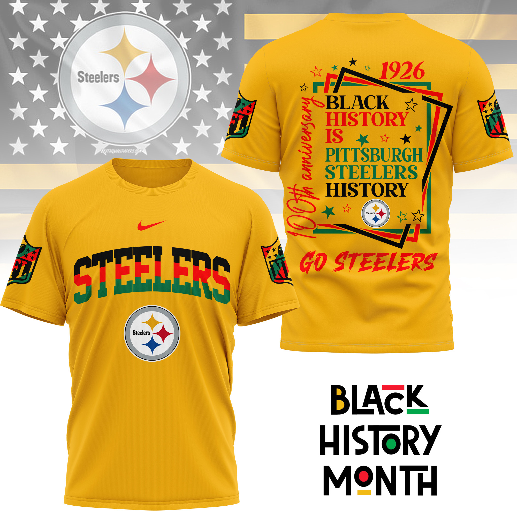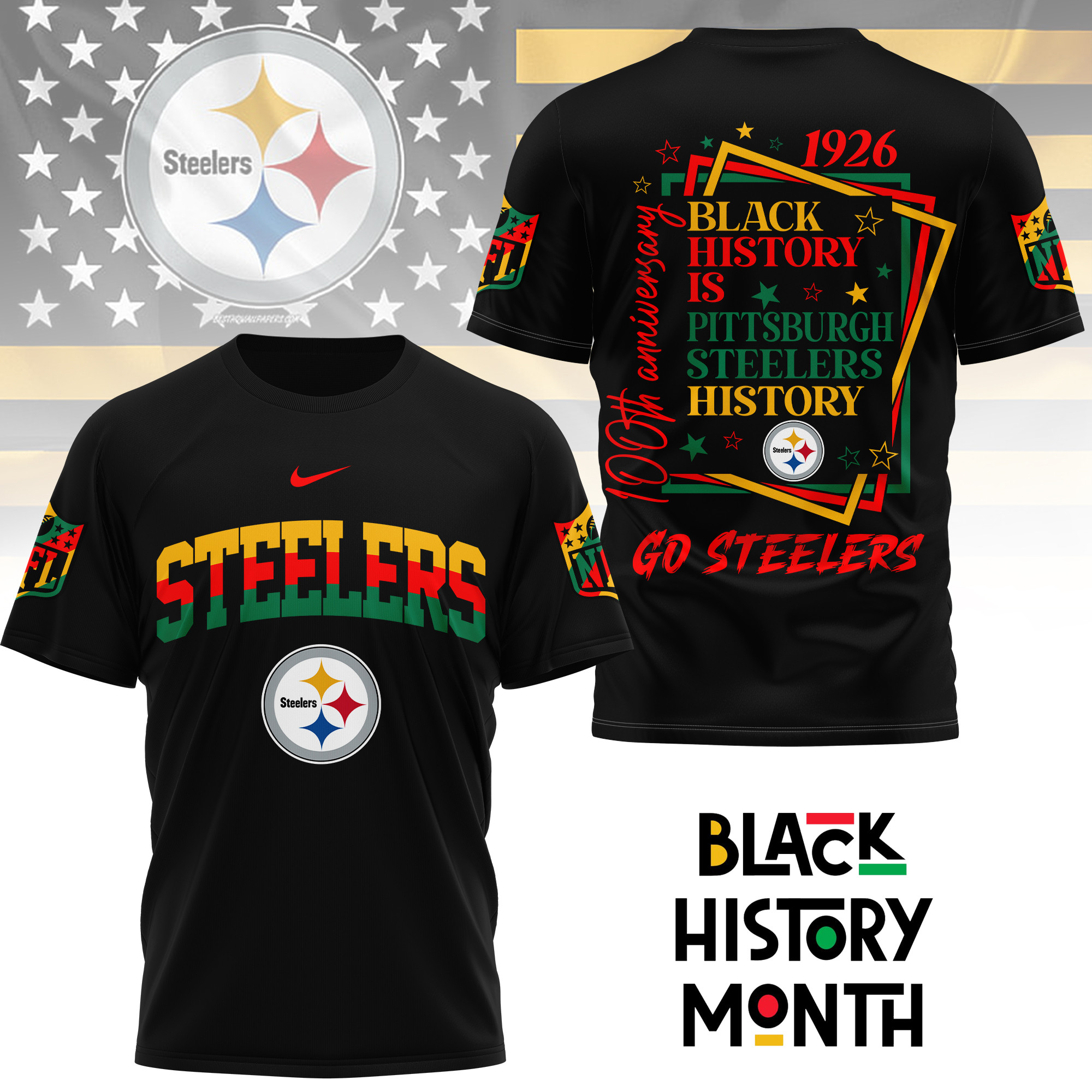 Pittsburgh Steelers | Premium NFL Black History Month 3D Shirt