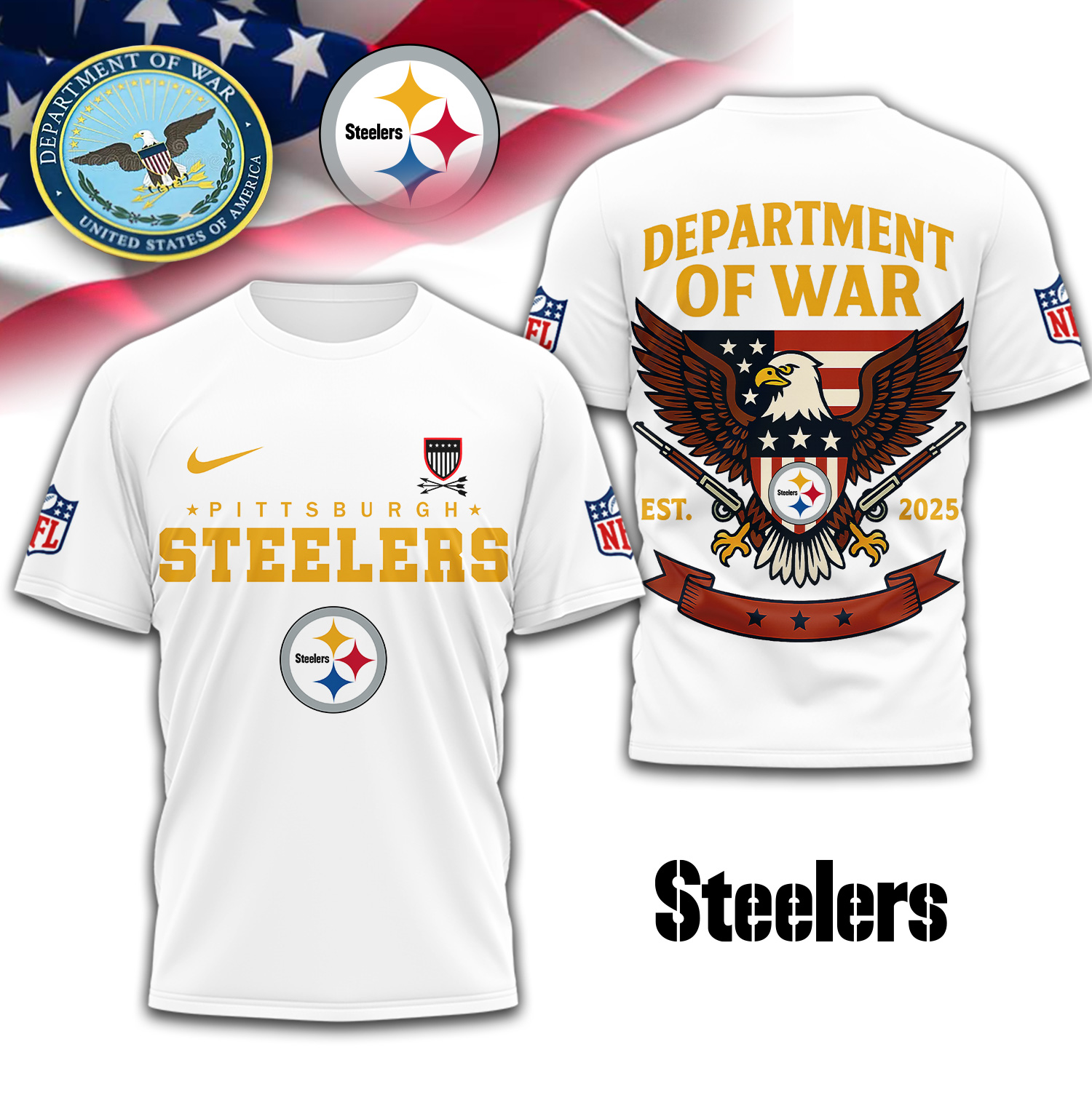 Pittsburgh Steelers | Premium NFL Department Of War 3D Shirt