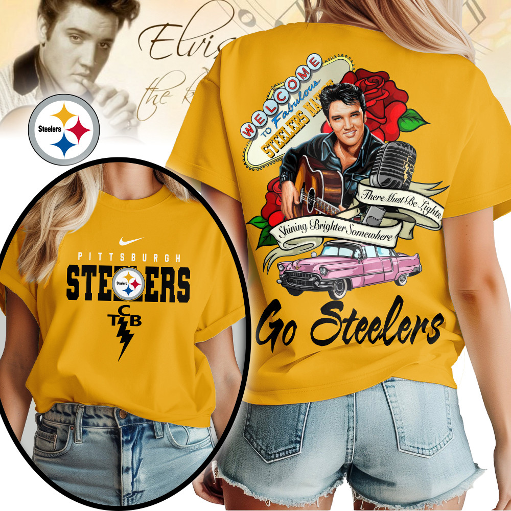Pittsburgh Steelers | Premium NFL Elvis Presley Rose Women Shirt