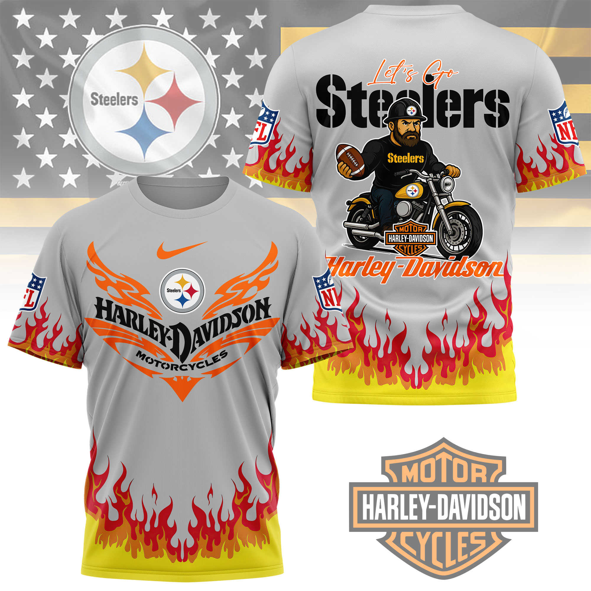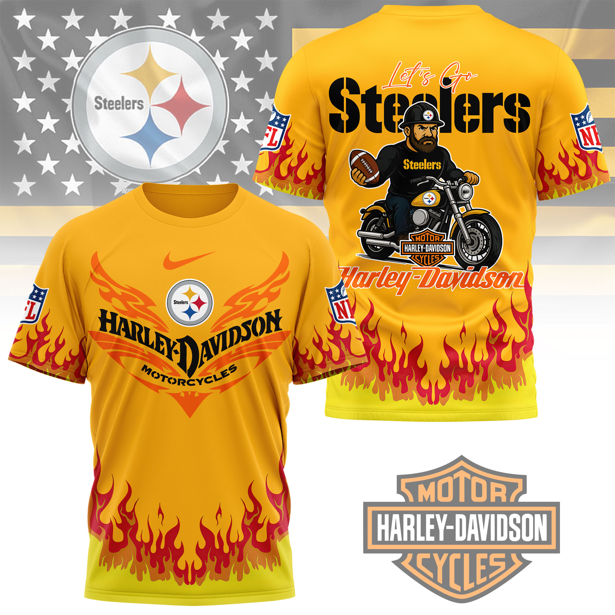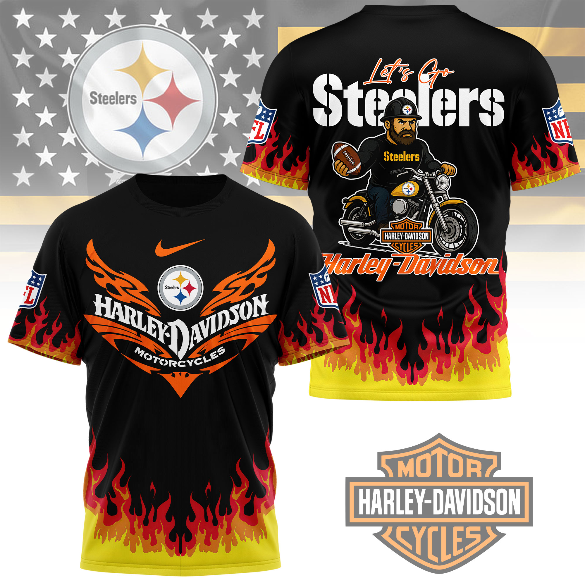 Pittsburgh Steelers | Premium NFL Harley Davidson Firewave 3D Shirt