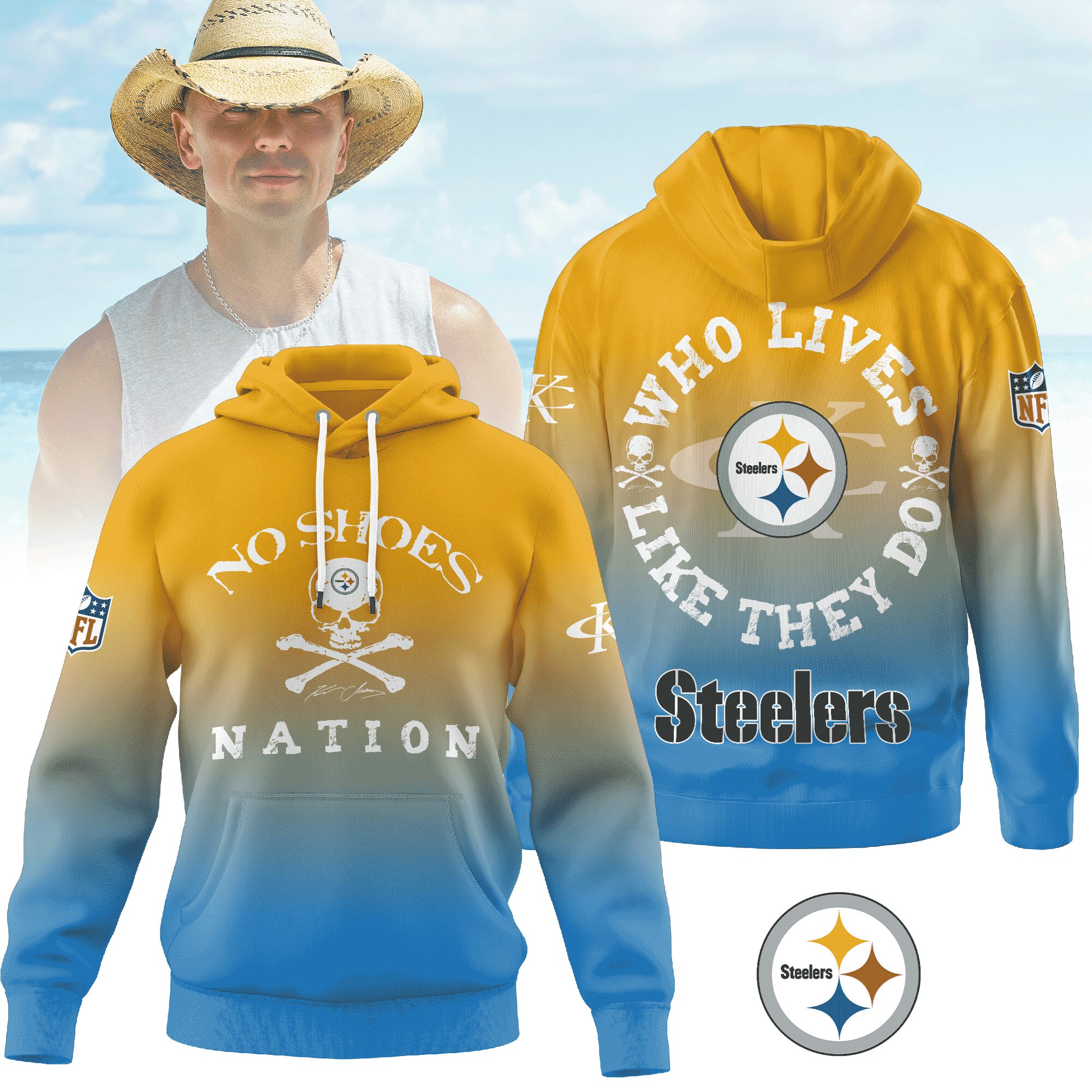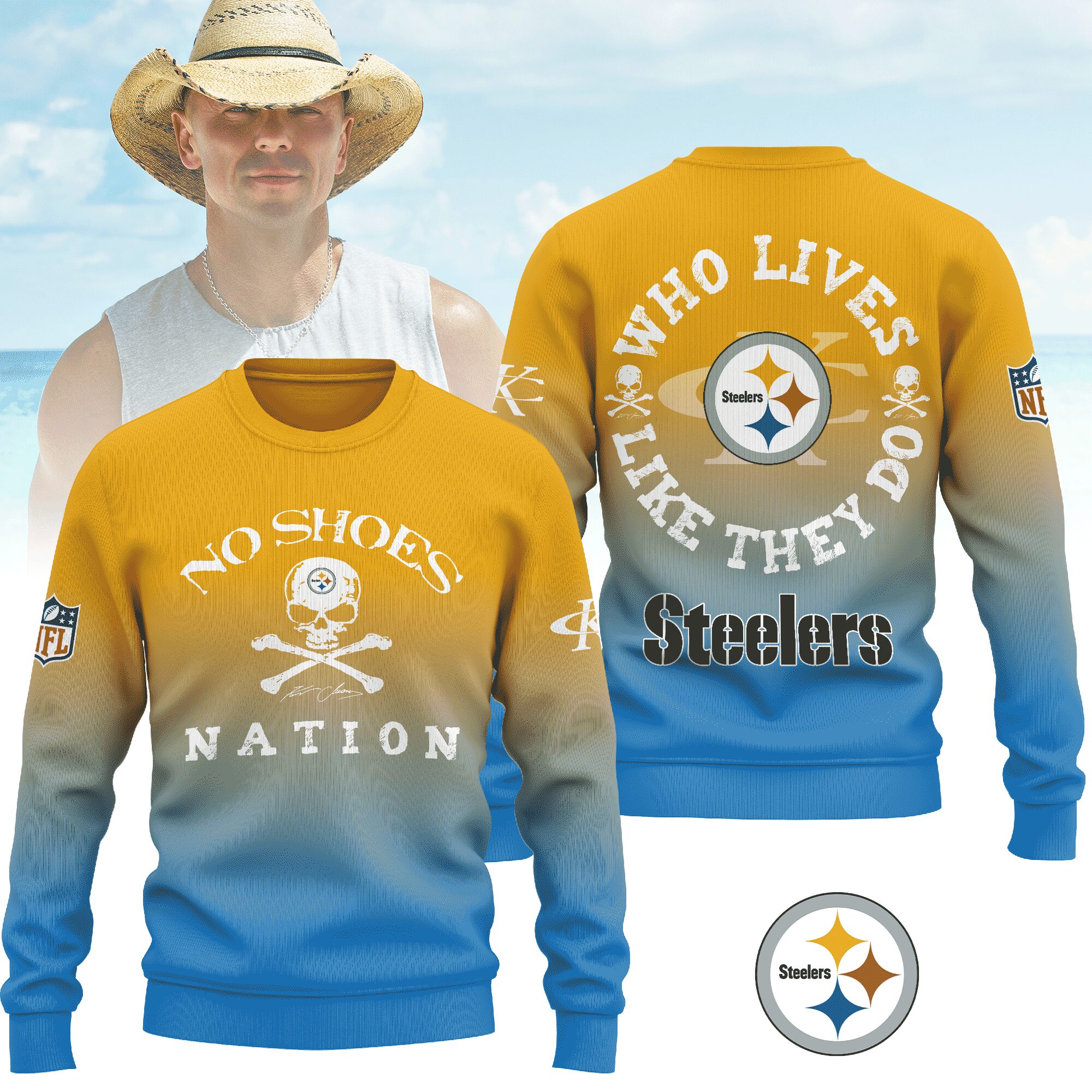Pittsburgh Steelers | Premium NFL Kenny Chesney Who Lives Like They Do Shirt