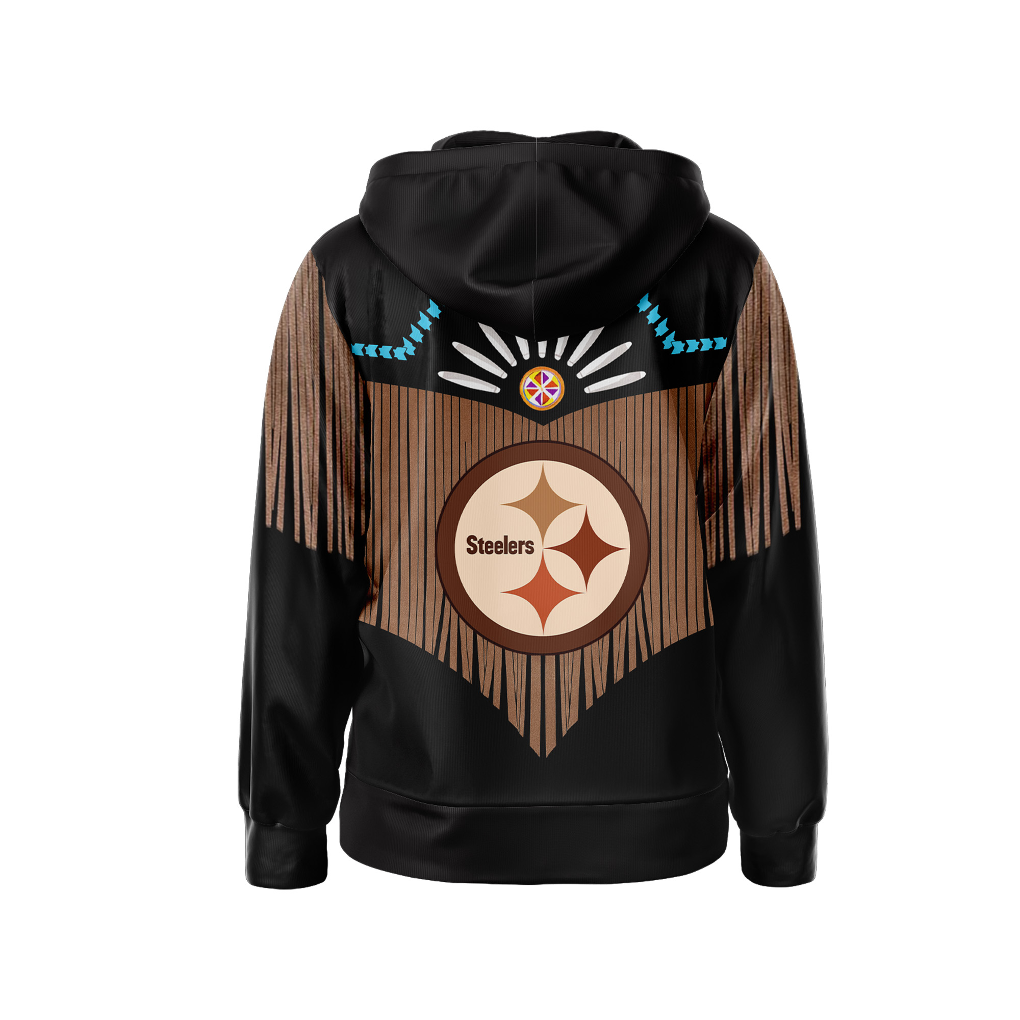 Pittsburgh Steelers | Premium NFL Native American Pattern 3D Zip Hoodie