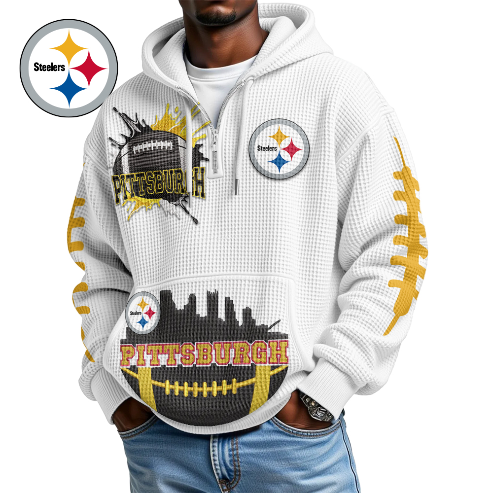Pittsburgh Steelers | Premium NFL Waffle Zipper Long Sleeve Hooded Sweatshirt