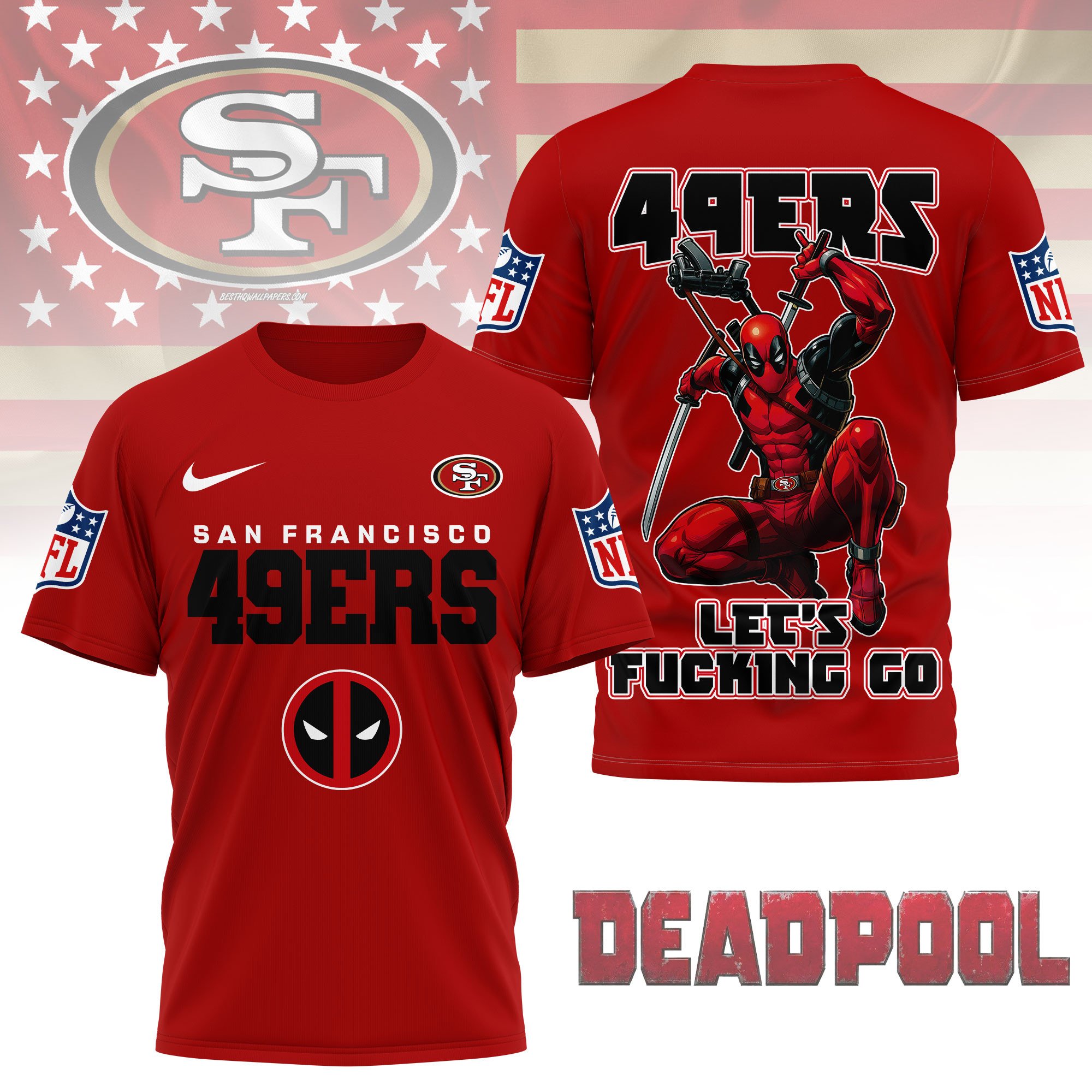San Francisco 49ers | Premium NFL Deadpool Fan 3D Shirt