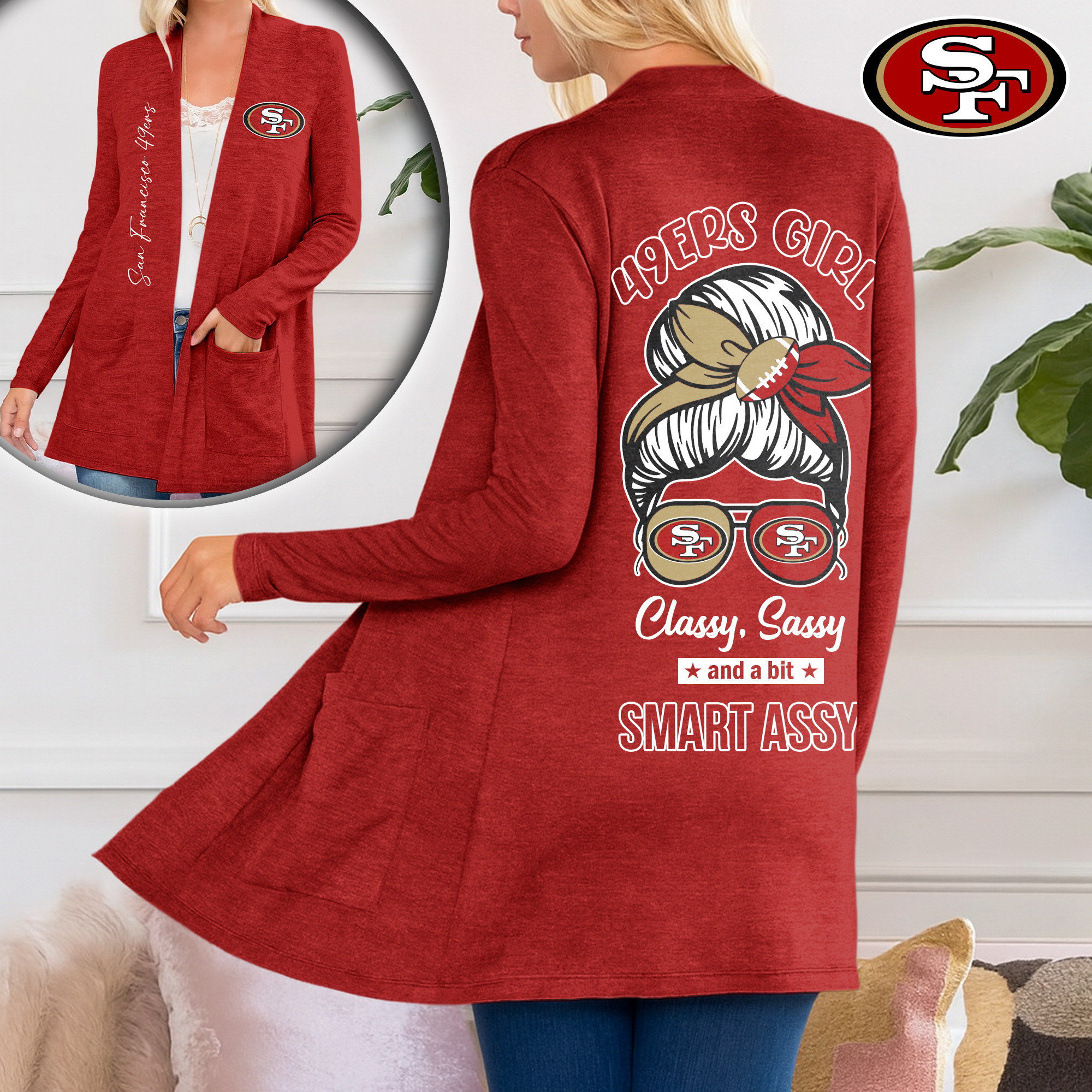 San Francisco 49ers | Premium NFL Football Girl Women Path Pocket Cardigan