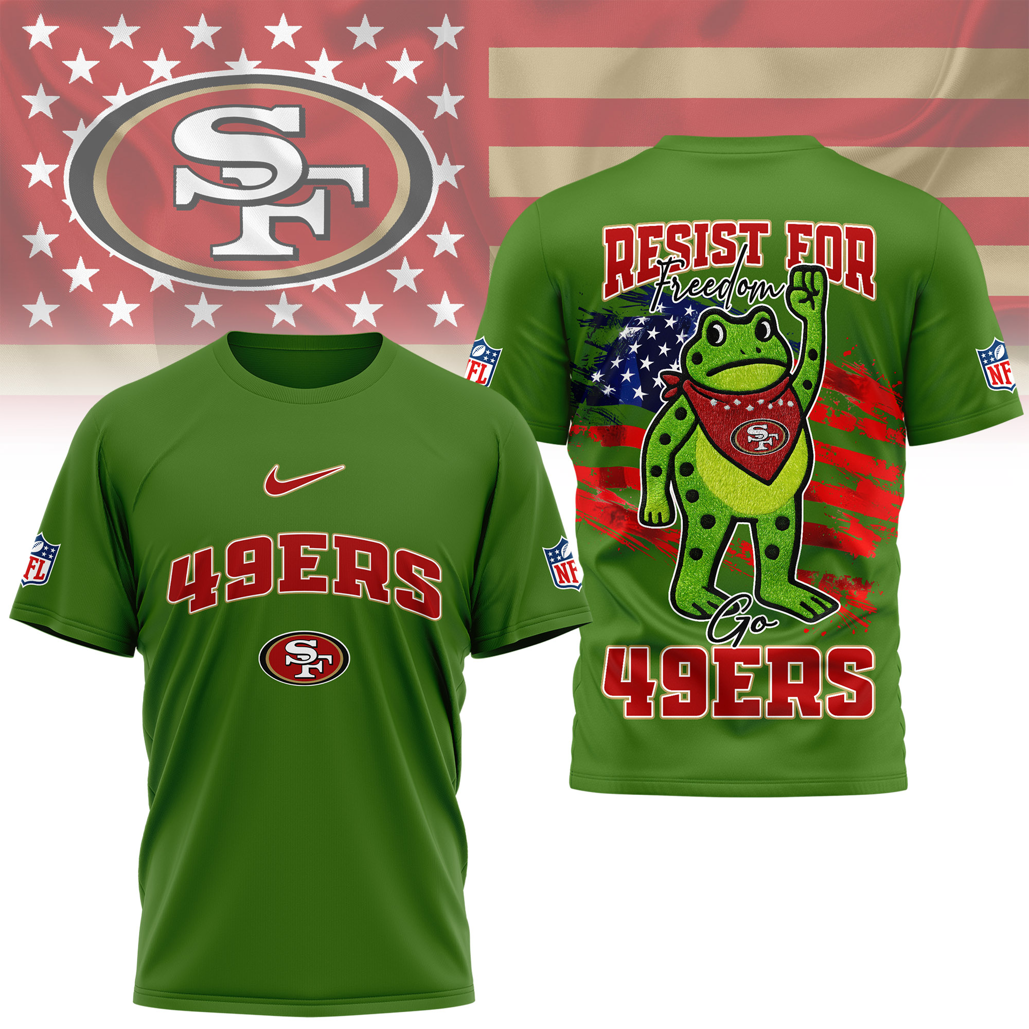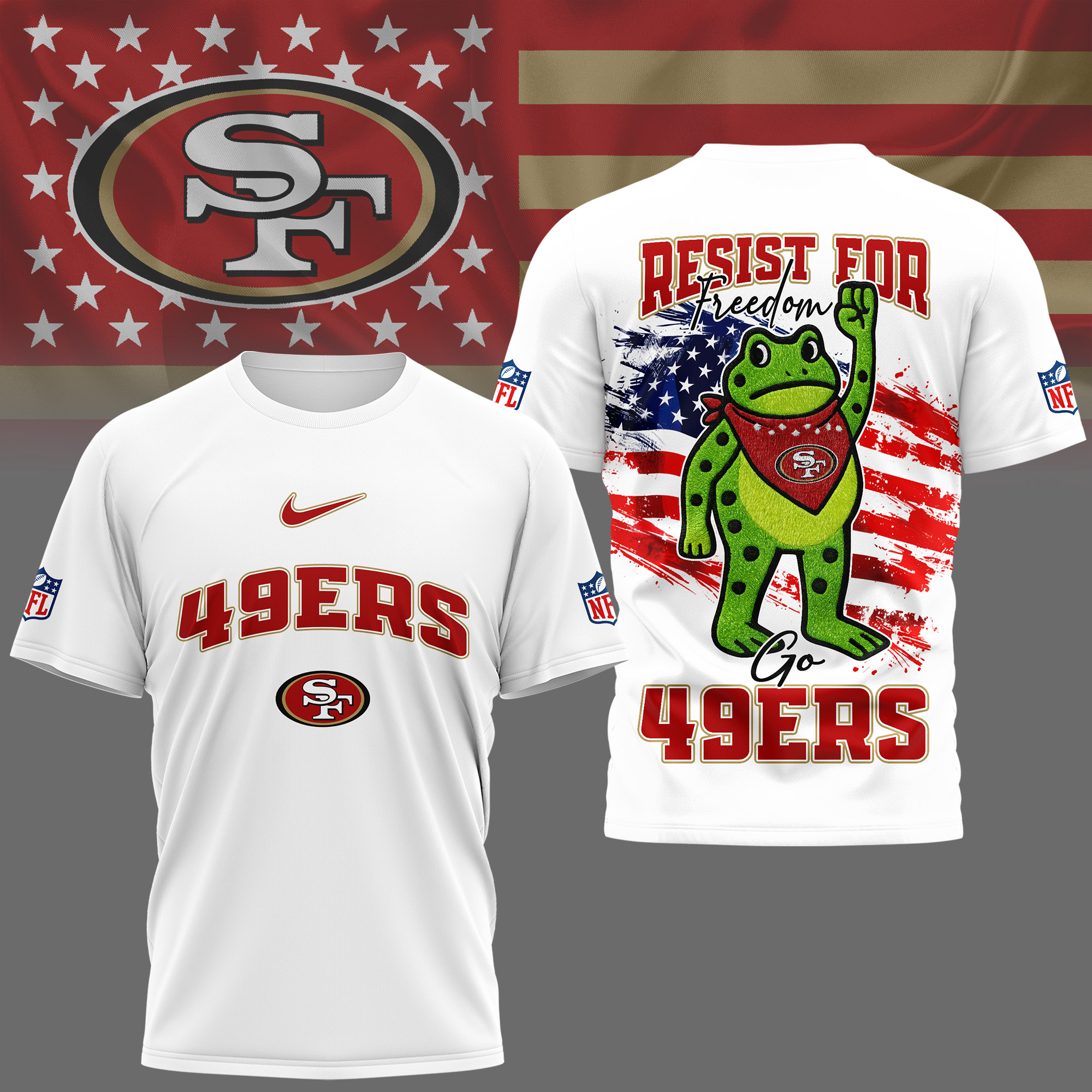 San Francisco 49ers | Premium NFL Freedom Frog Fan 3D Shirt
