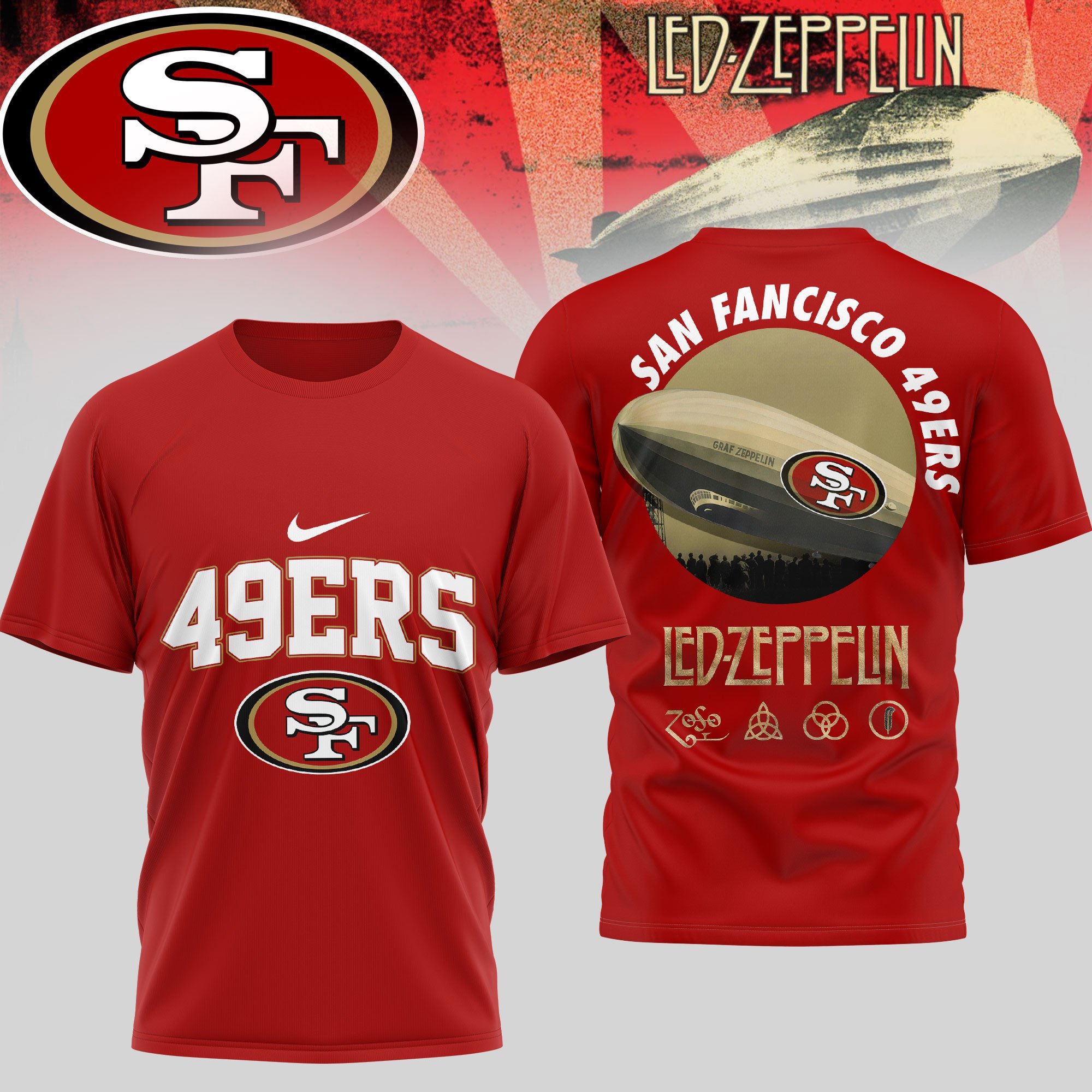San Francisco 49ers | Premium NFL Led Zeppelin 3D Shirt