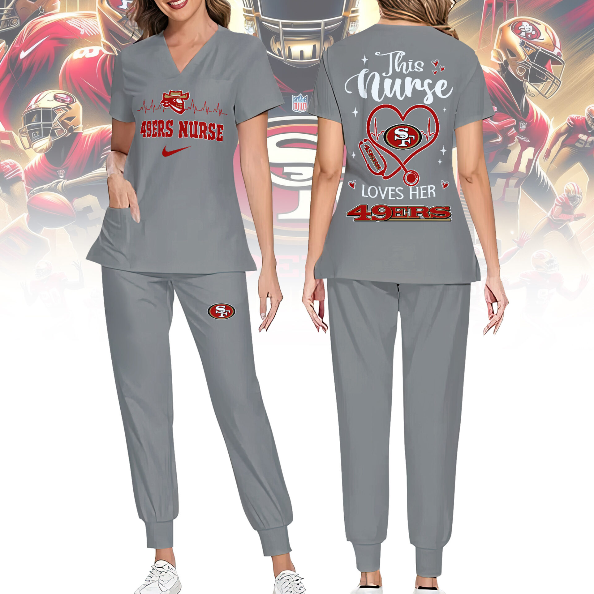 San Francisco 49ers | Premium NFL Nurse Appreciation Stretch V-Neck Scrub Top And Jogger Pant