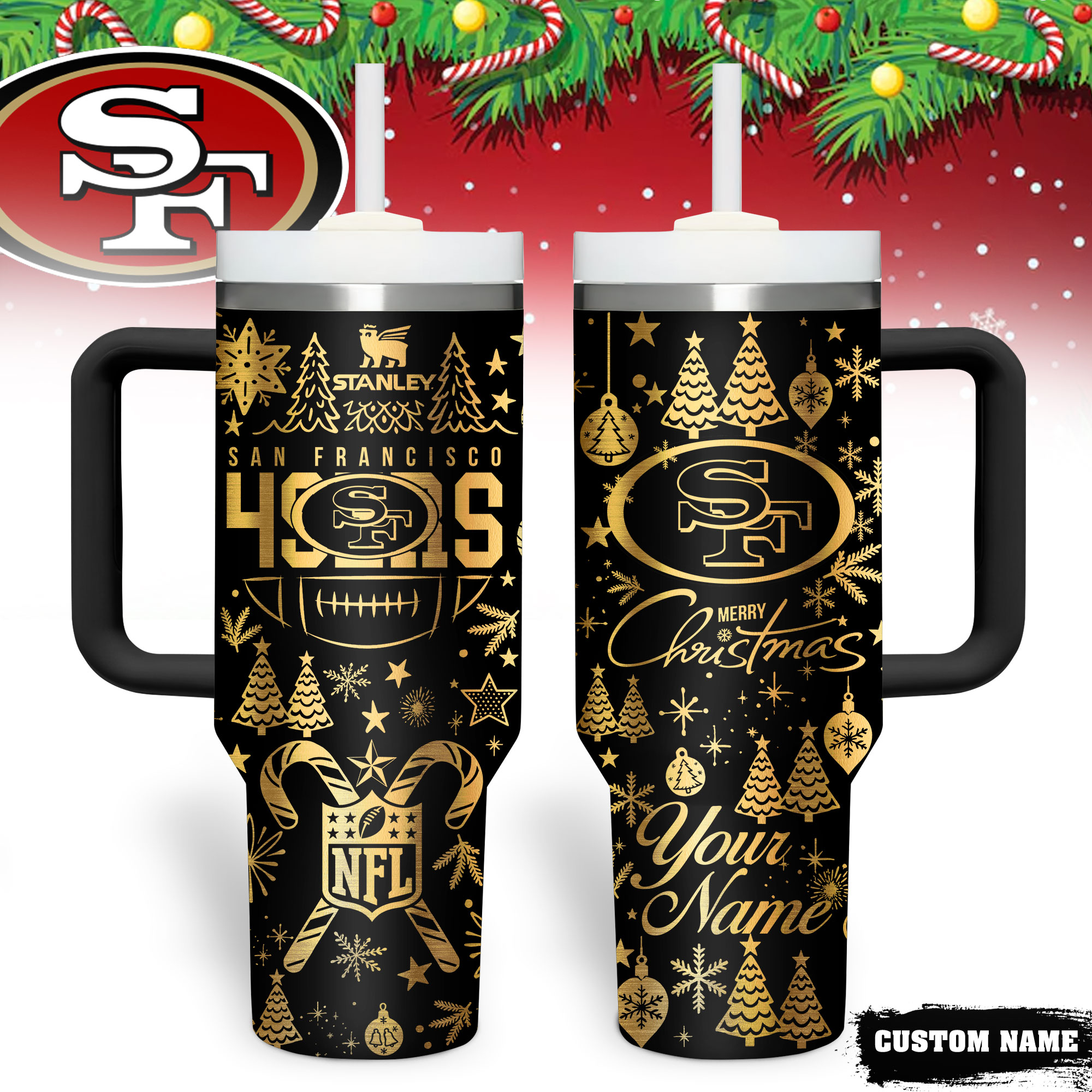 Categories: NFL, Premium NFL Personalized Holiday Gold Tumbler 40oz, San Francisco 49ers