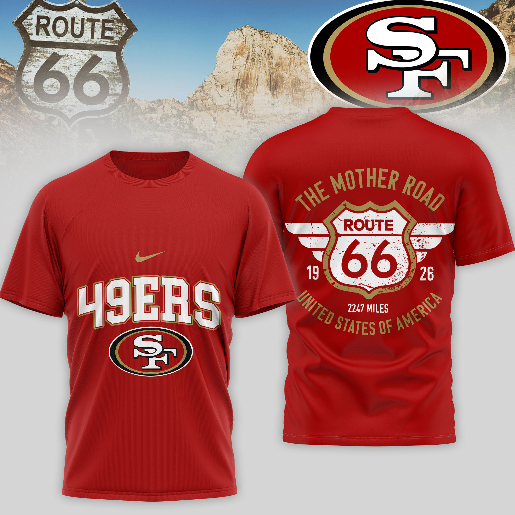 San Francisco 49ers | Premium NFL Route 66 3D Shirt
