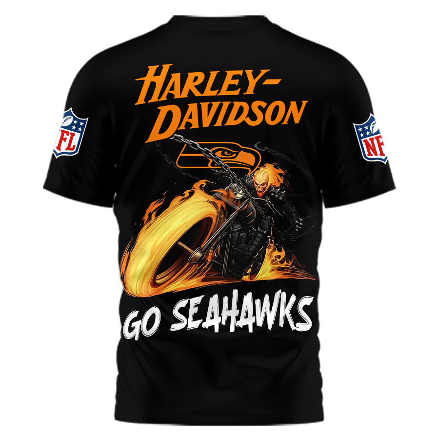 Seattle Seahawks | Premium NFL Ghost Rider Harley Davidson 3D Shirt