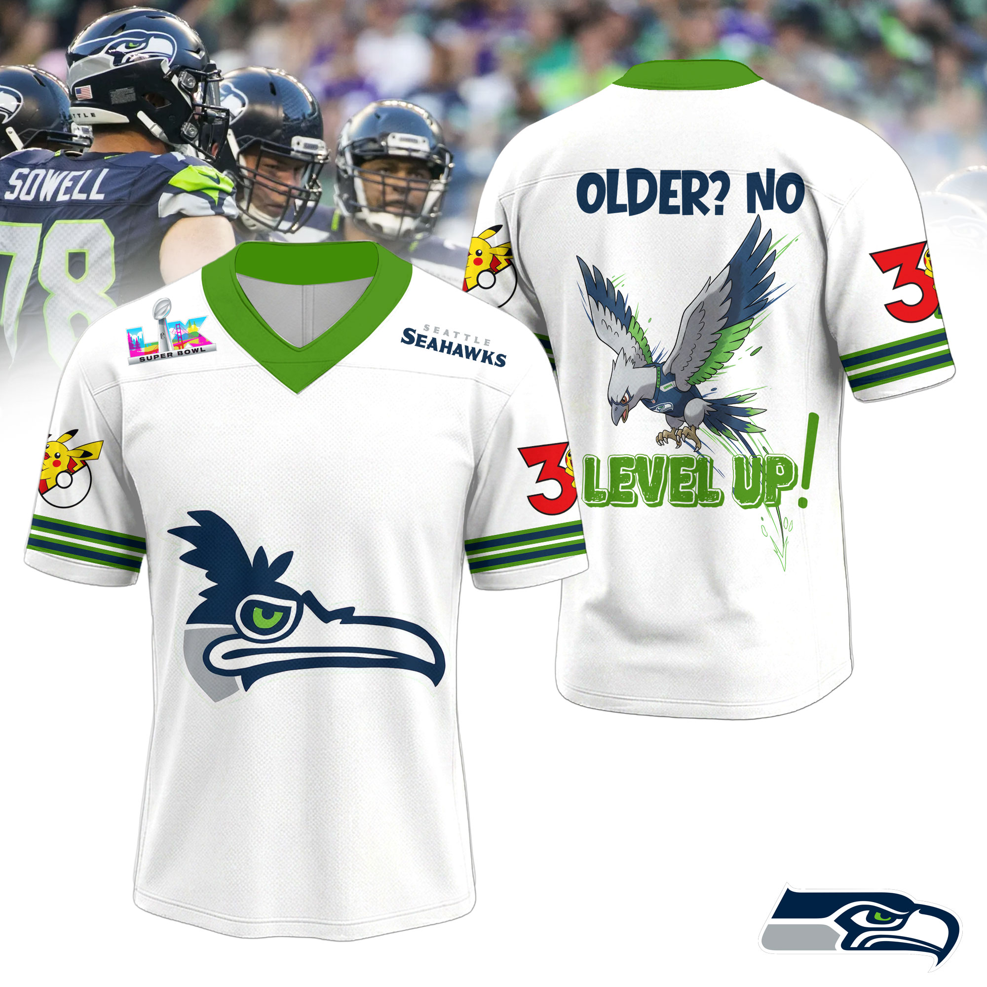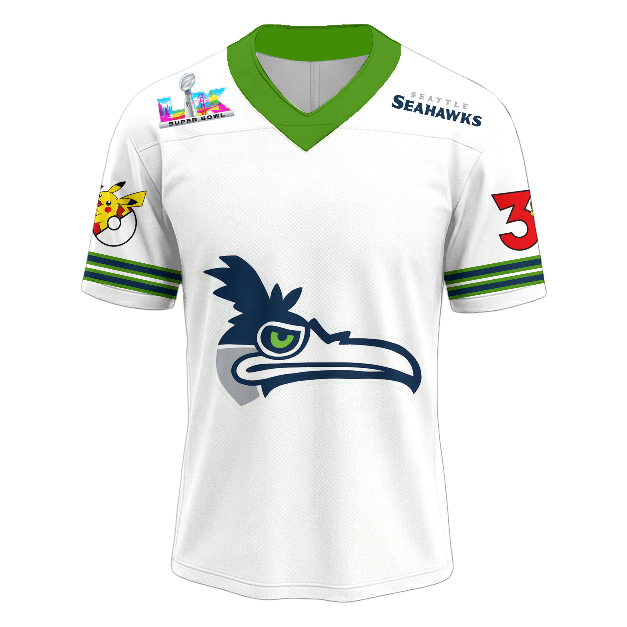 Seattle Seahawks | Premium Super Bowl x Pokemon 30th Anniversary V-neck Baseball Jersey HY
