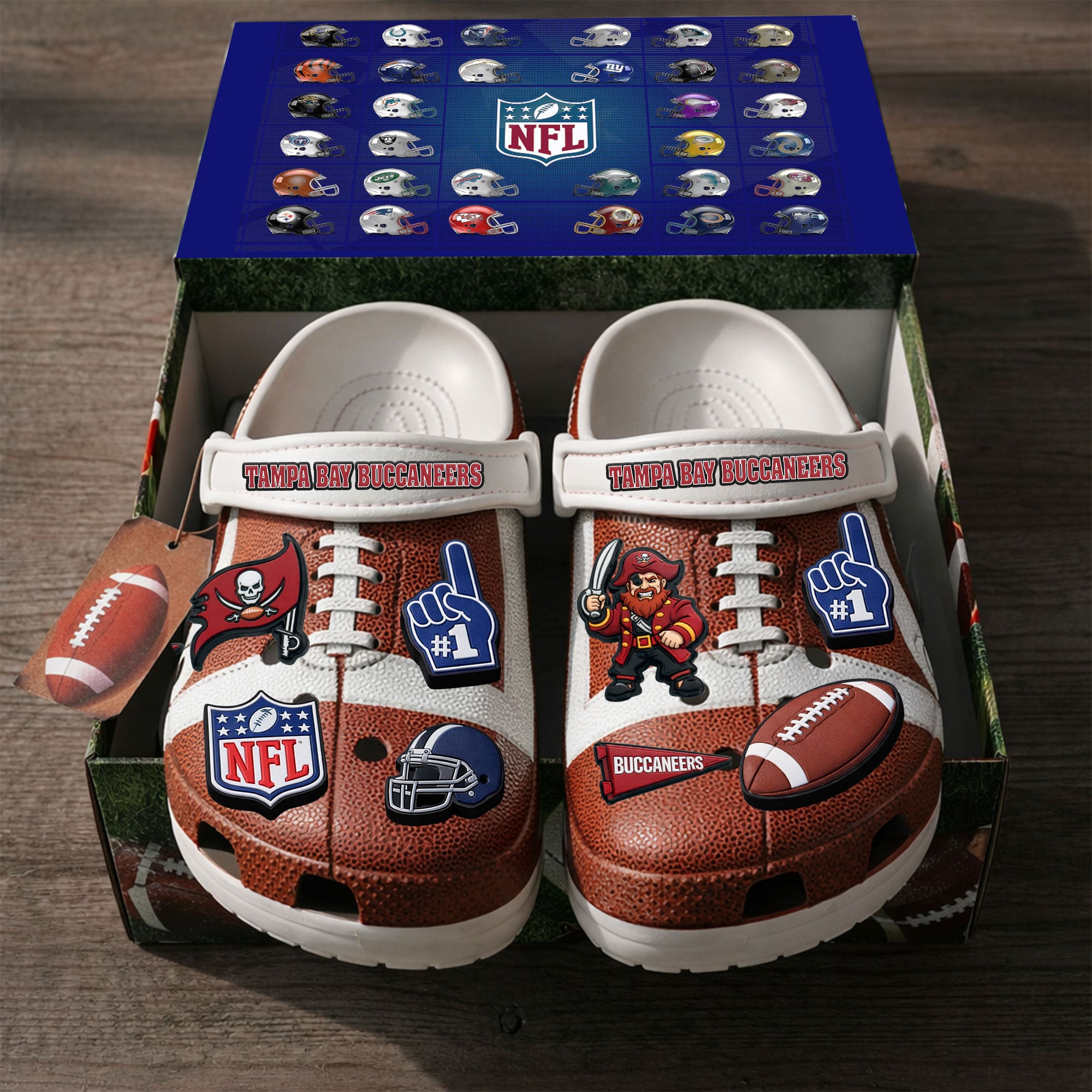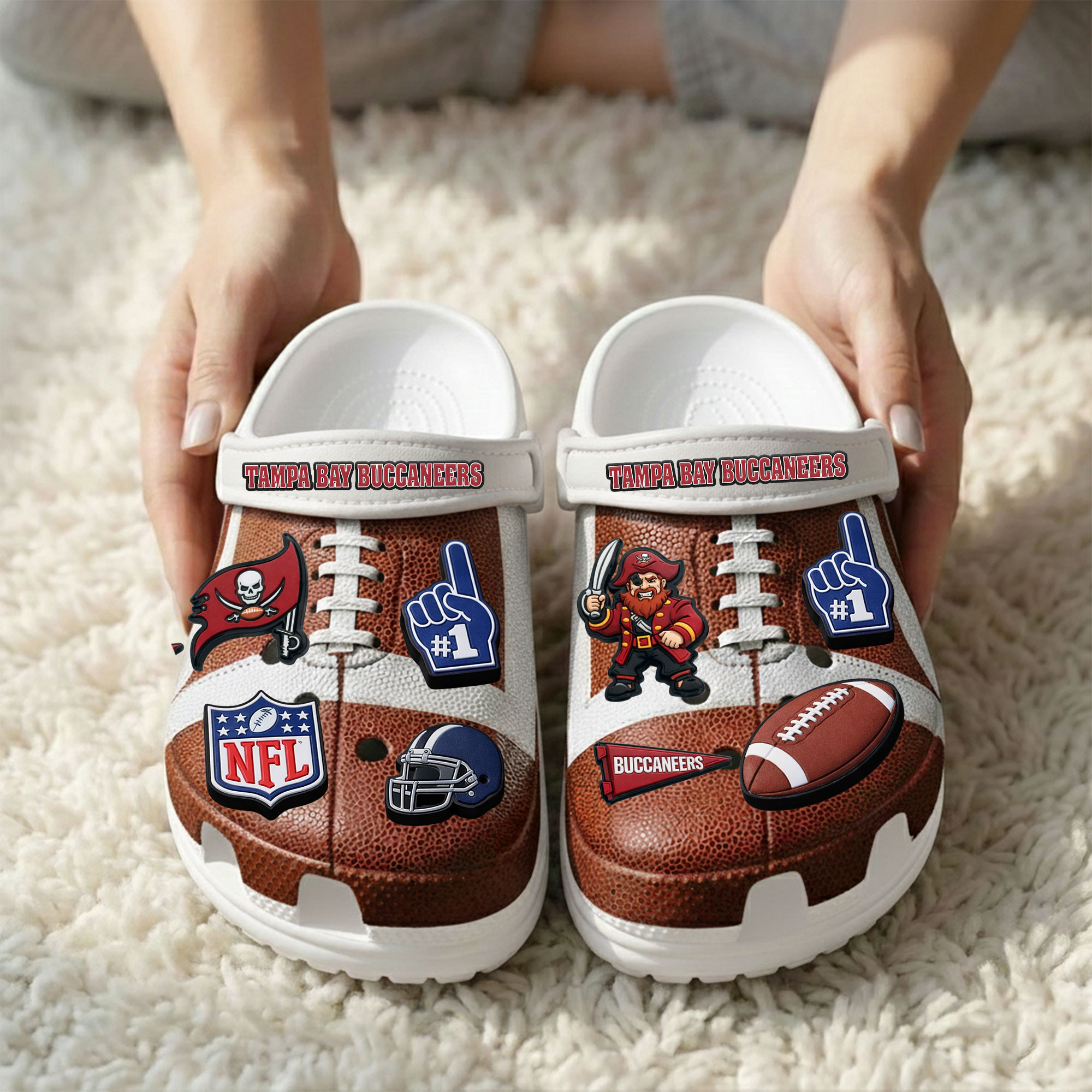 - This item: Tampa Bay Buccaneers | PREMIUM NFL CLOGS WITH CHARMS Original price was: $119.99.$74.99Current price is: $74.99.