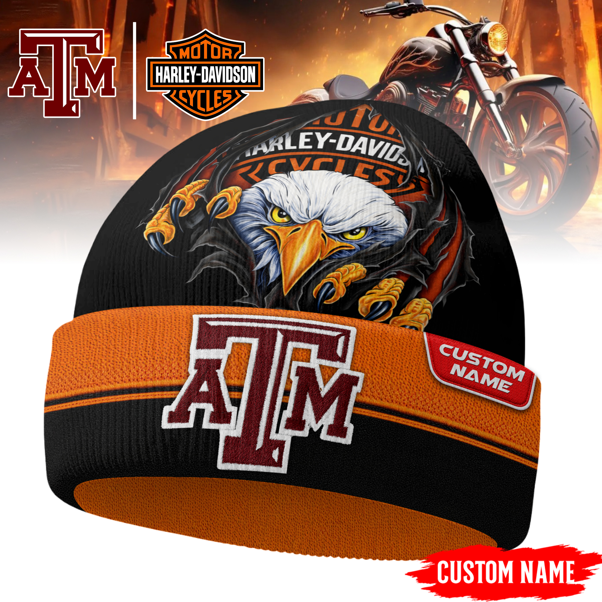 Categories: NCAA, Premium NCAA Harley Davidson Beanie Hat TD, Texas A&M Aggies