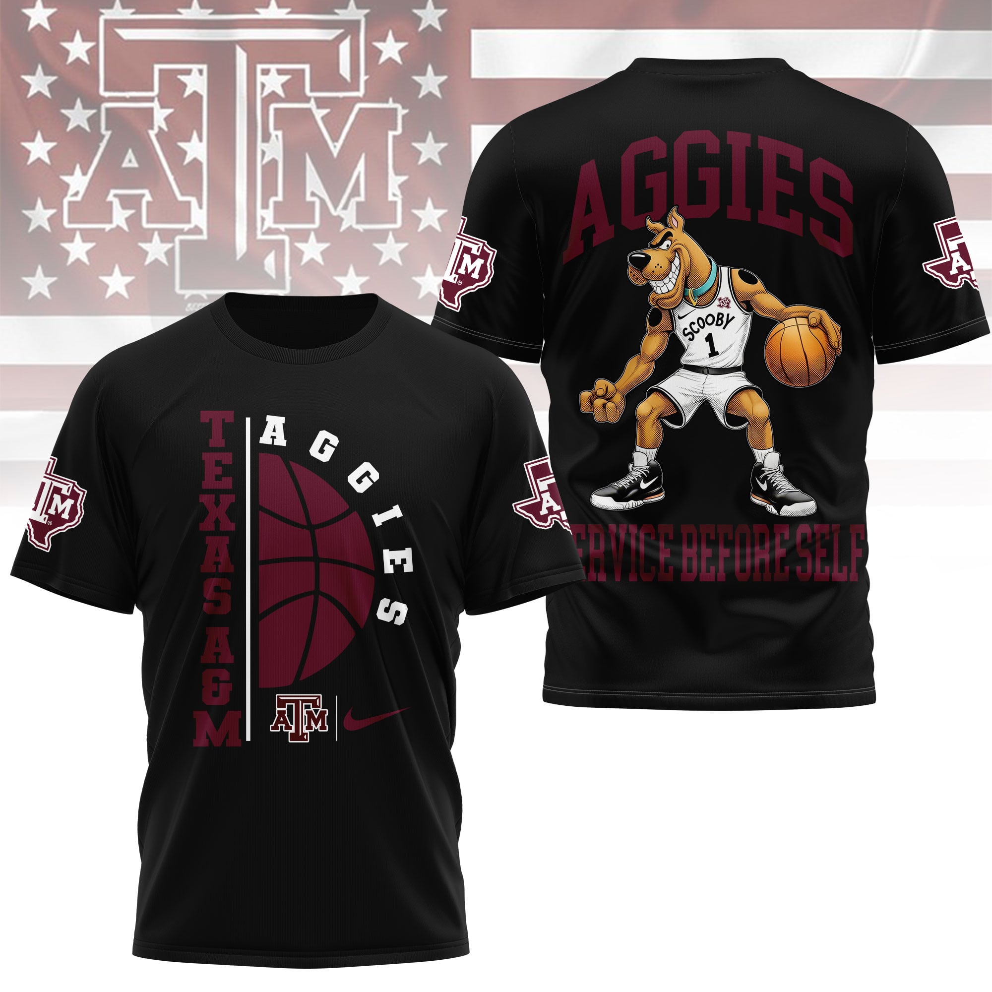 Texas A&M Aggies | Premium NCAA Scooby-Doo Basketball 3D Shirt