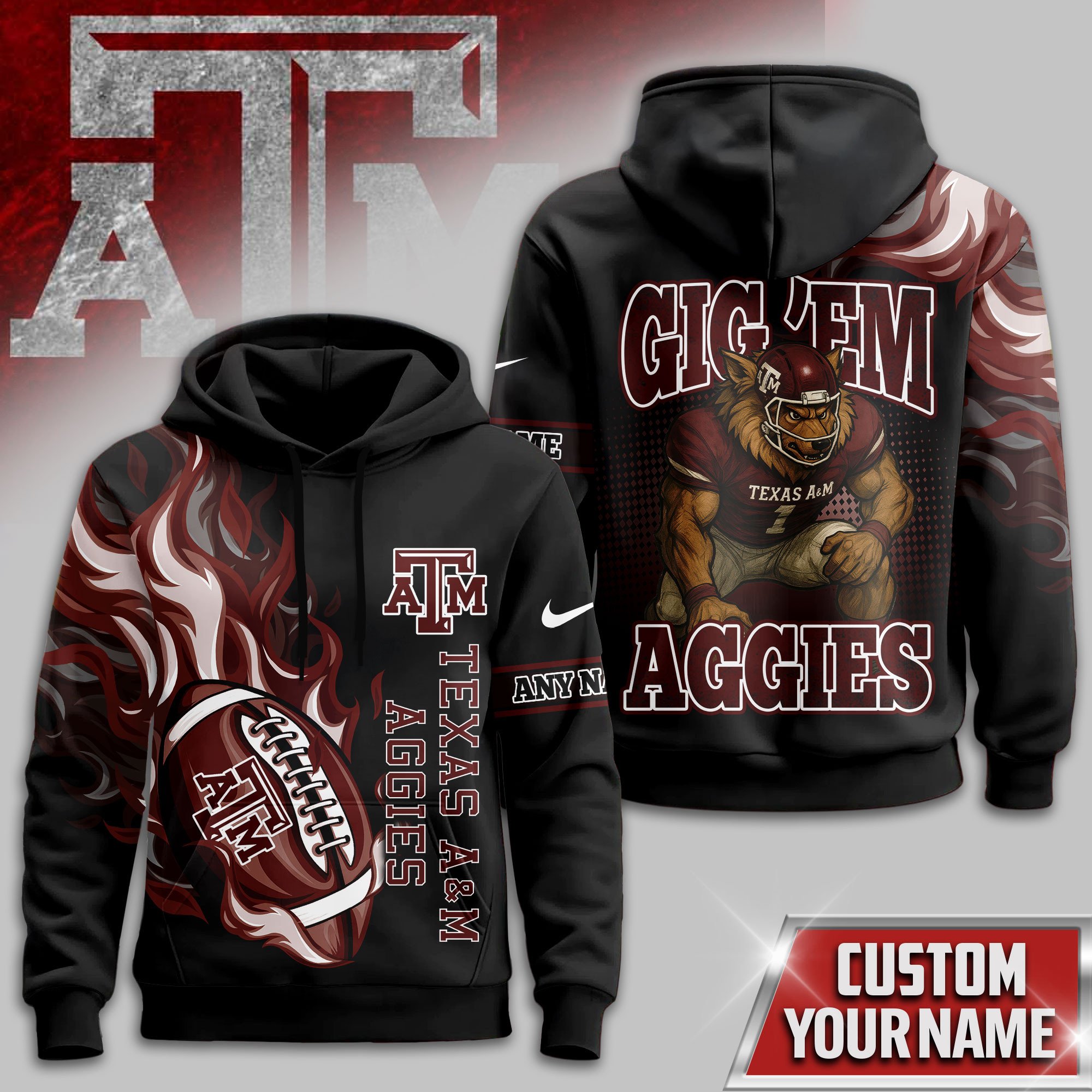 Texas A&M Aggies | Premium NCAA Victory Flame Personalized Hoodie