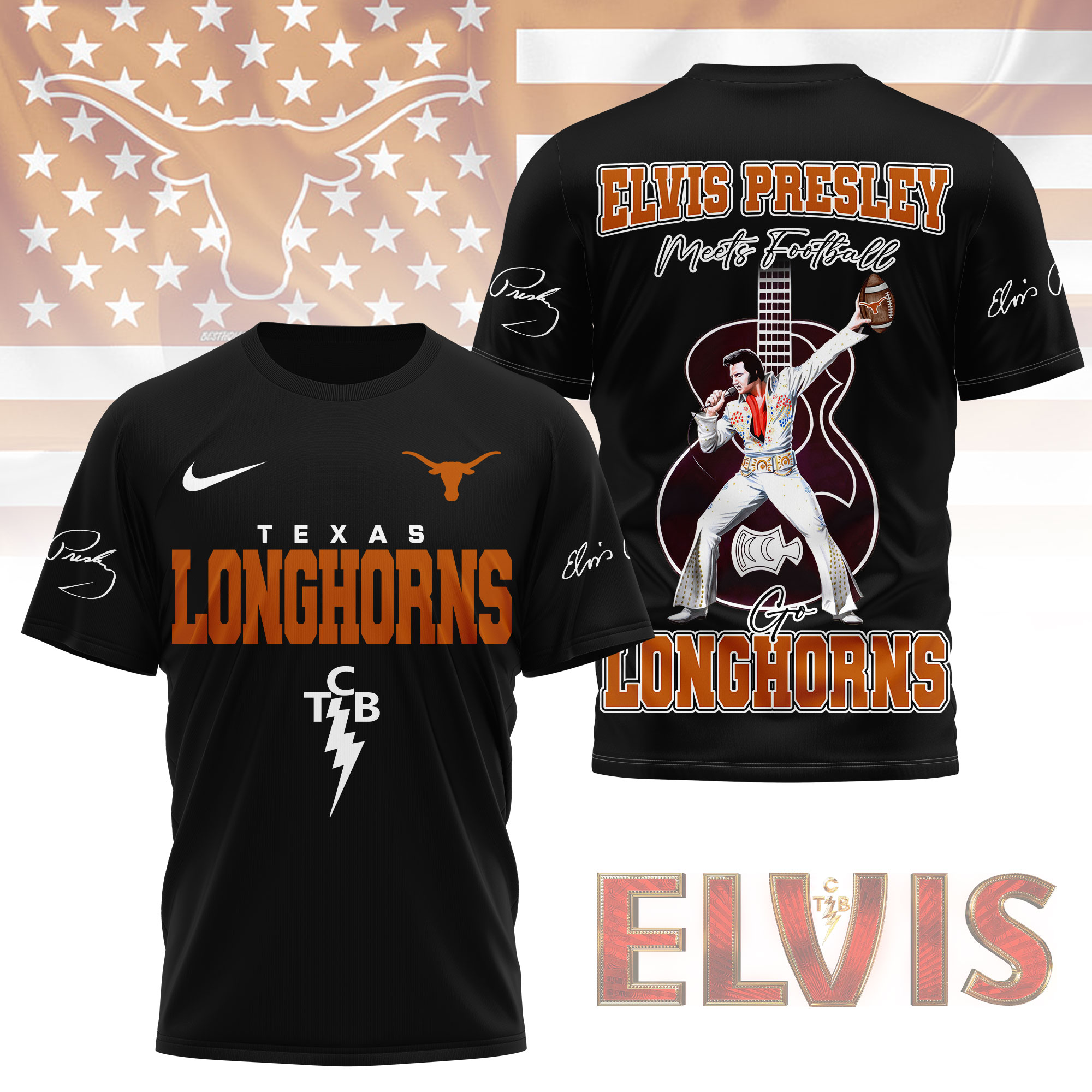 Texas Longhorns | Premium NCAA Elvis Presley Fan 3D Shirt
