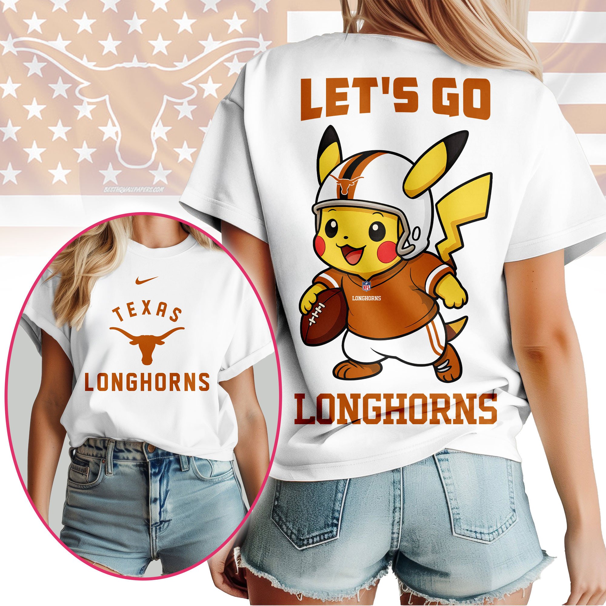 Texas Longhorns | Premium NCAA Pokemon Fan 3D Shirt