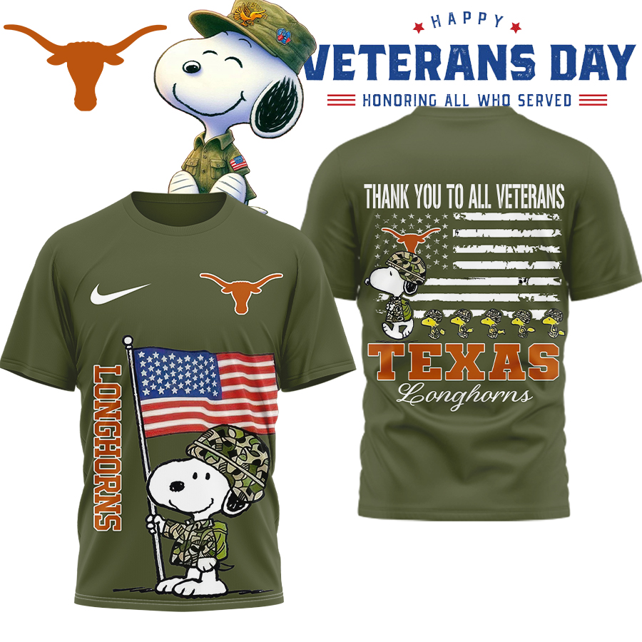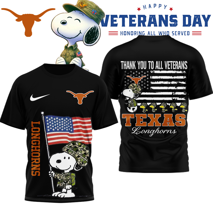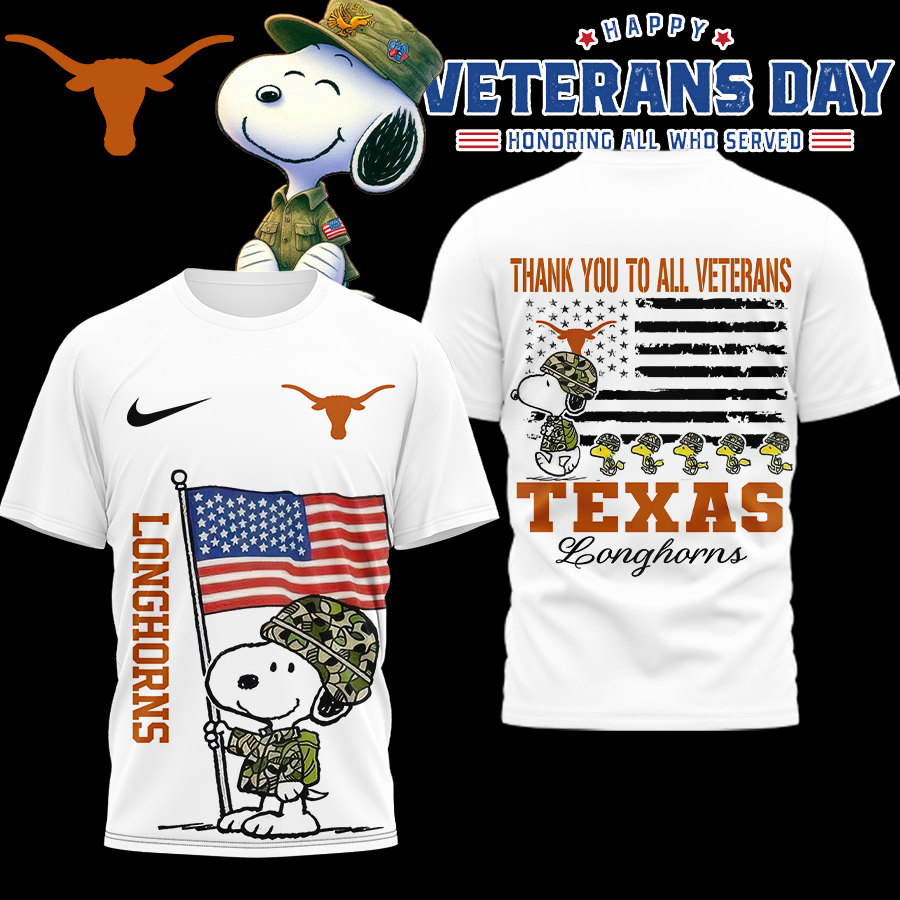 Texas Longhorns | Premium NCAA Snoopy Thank You Veterans 3D Shirt