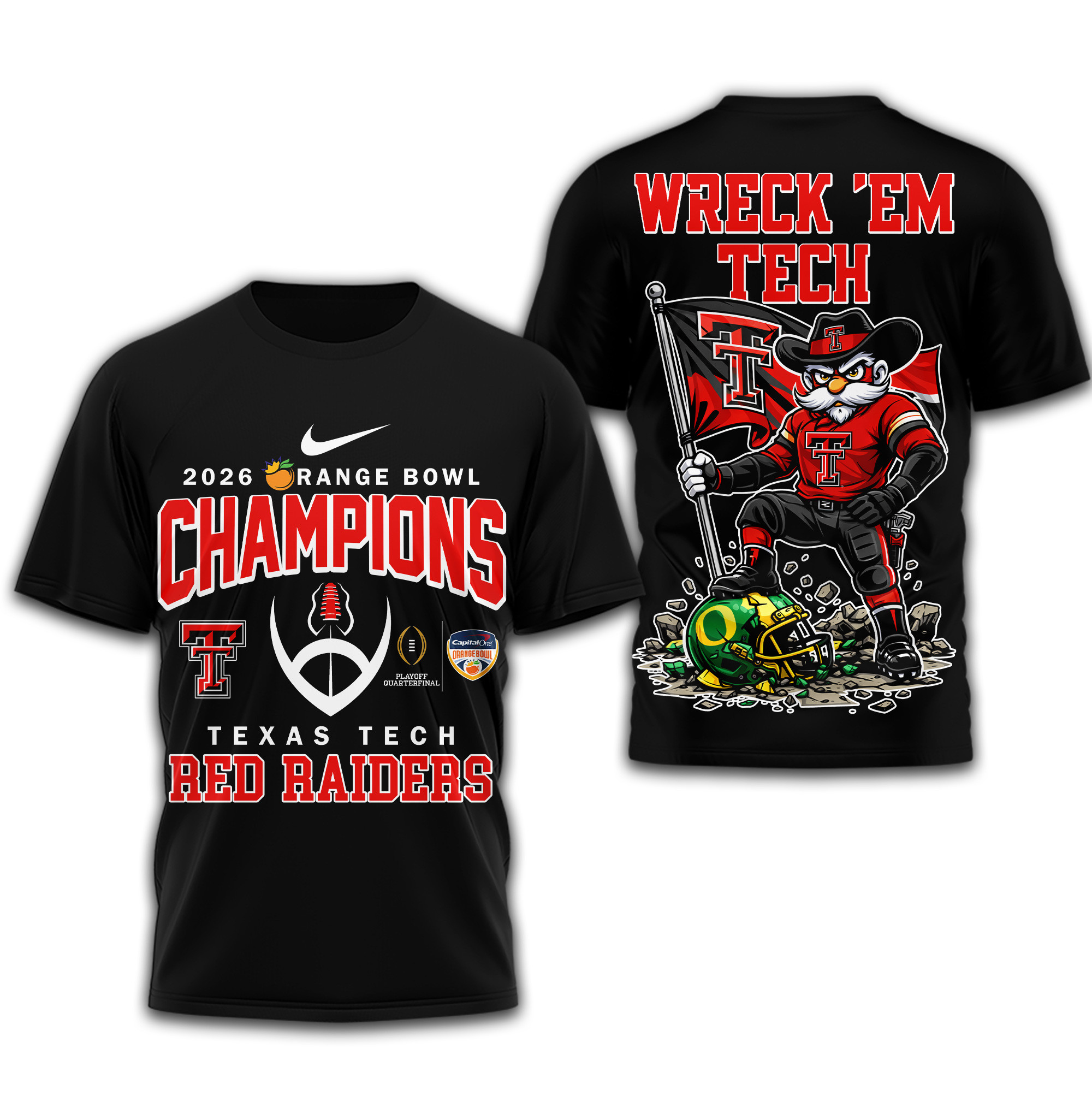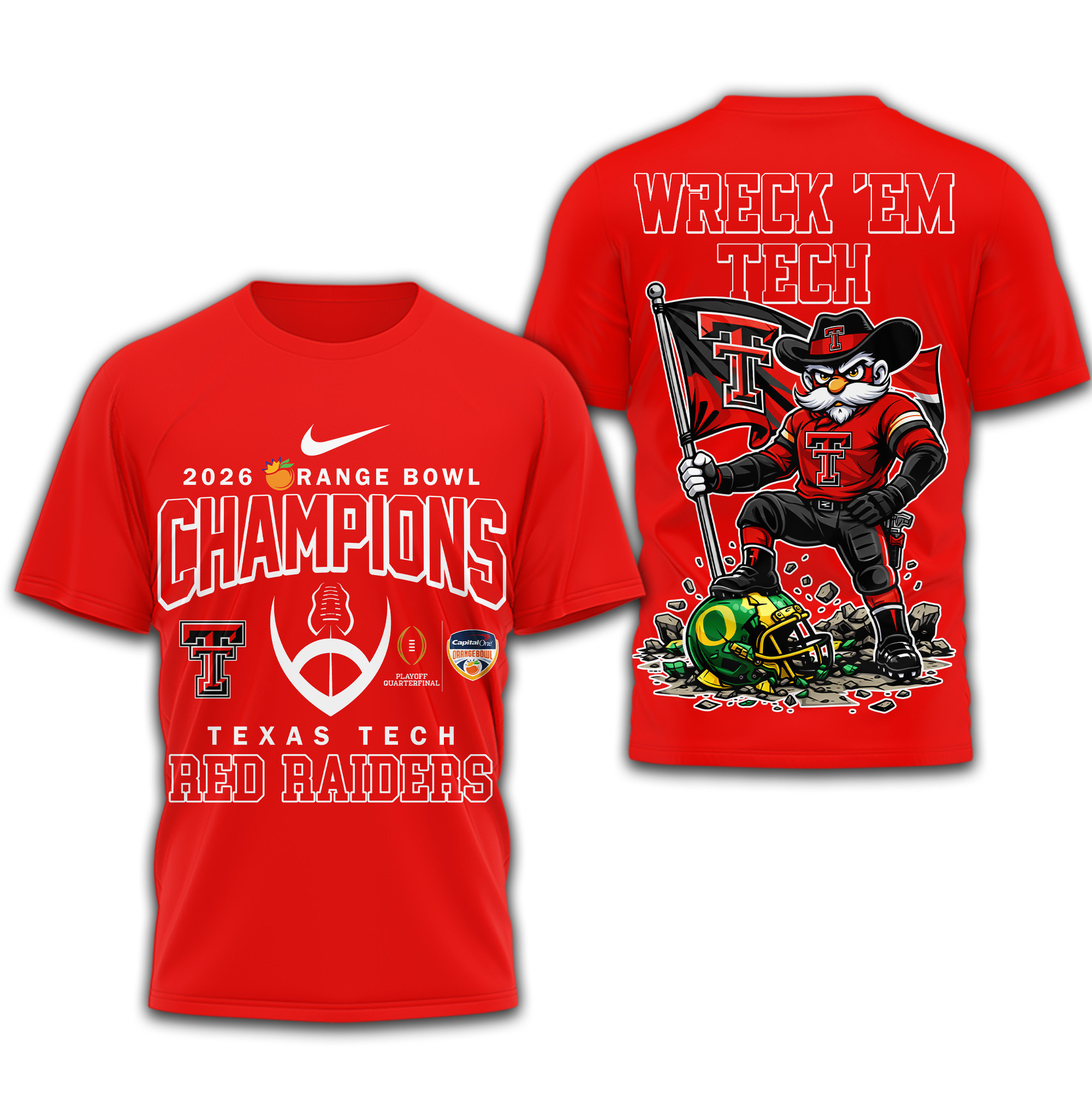 Texas Tech Red Raiders | Premium NCAA 2026 Orange Bowl Champions 3D Shirt