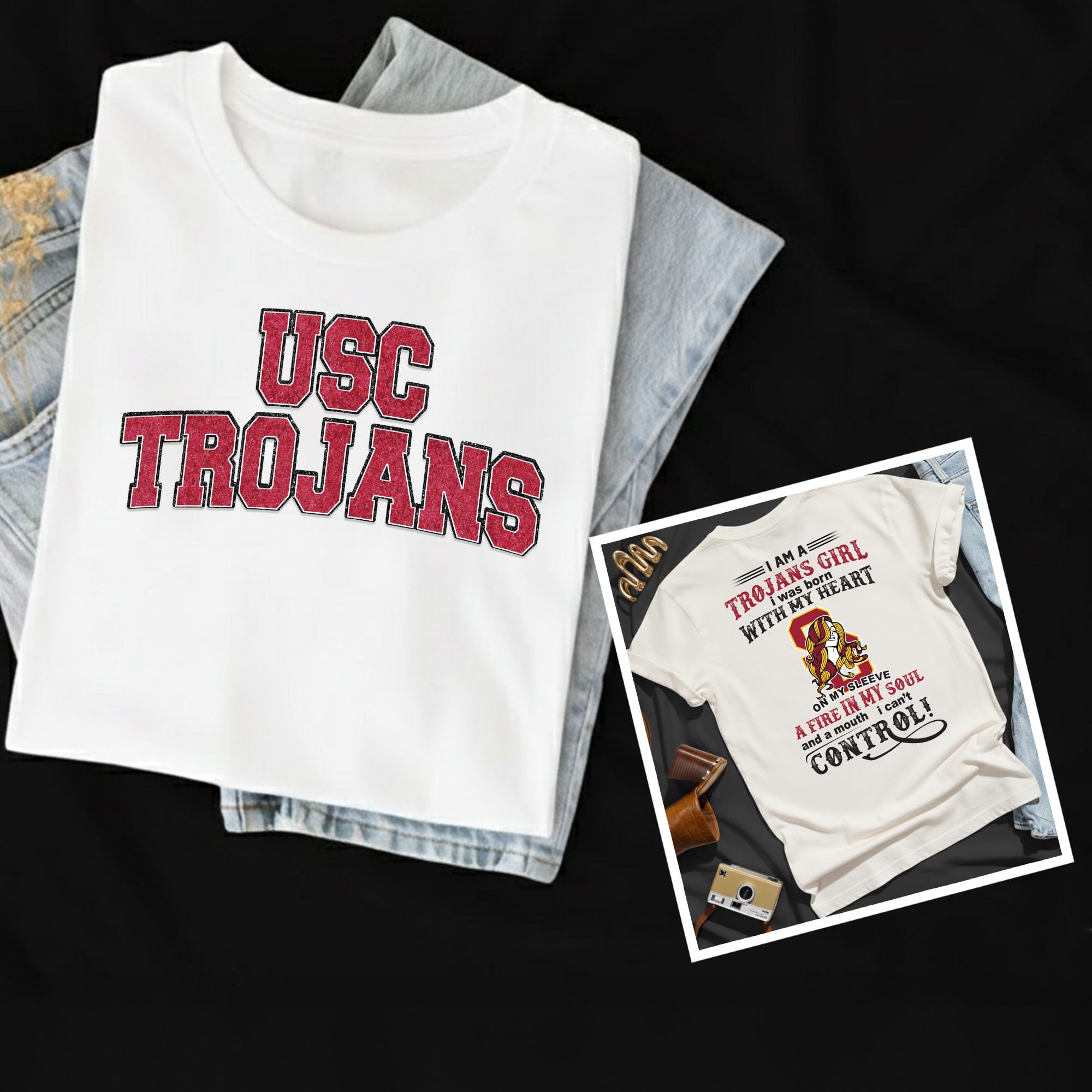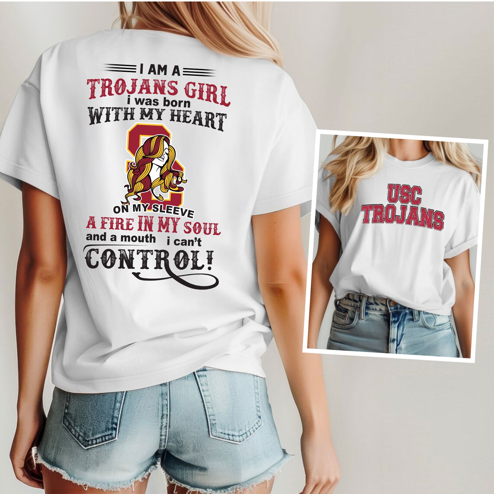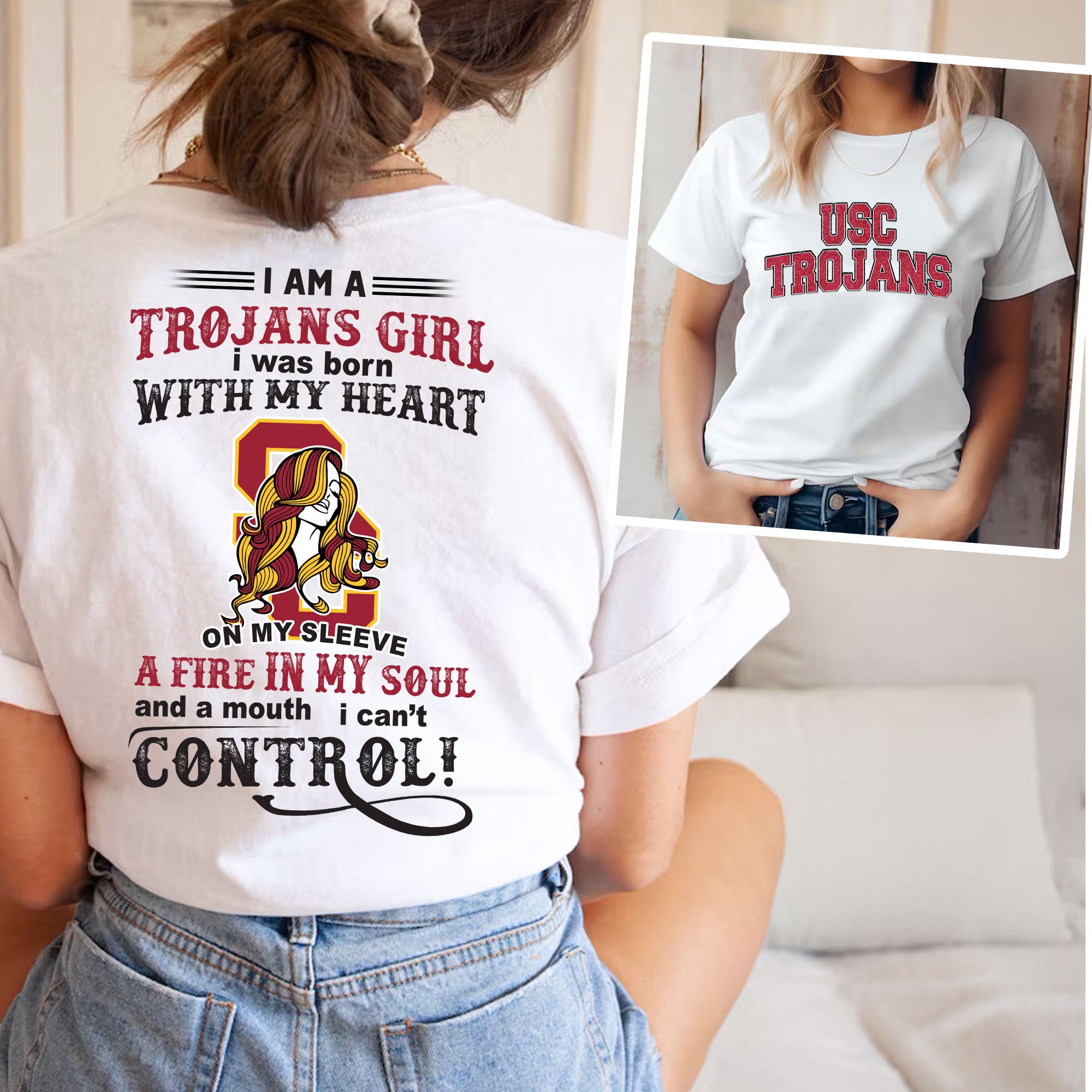 - This item: USC Trojans | Premium NCAA Girl Fan 3D Shirt Original price was: $37.95.$27.95Current price is: $27.95.