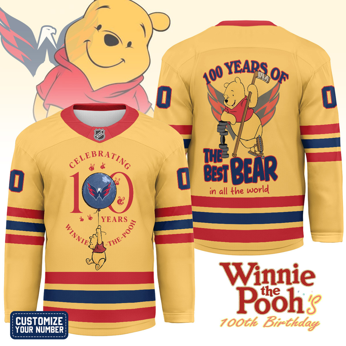 Washington Capitals | Premium NHL Winnie The Pooh 100th Anniversary Hockey Jersey