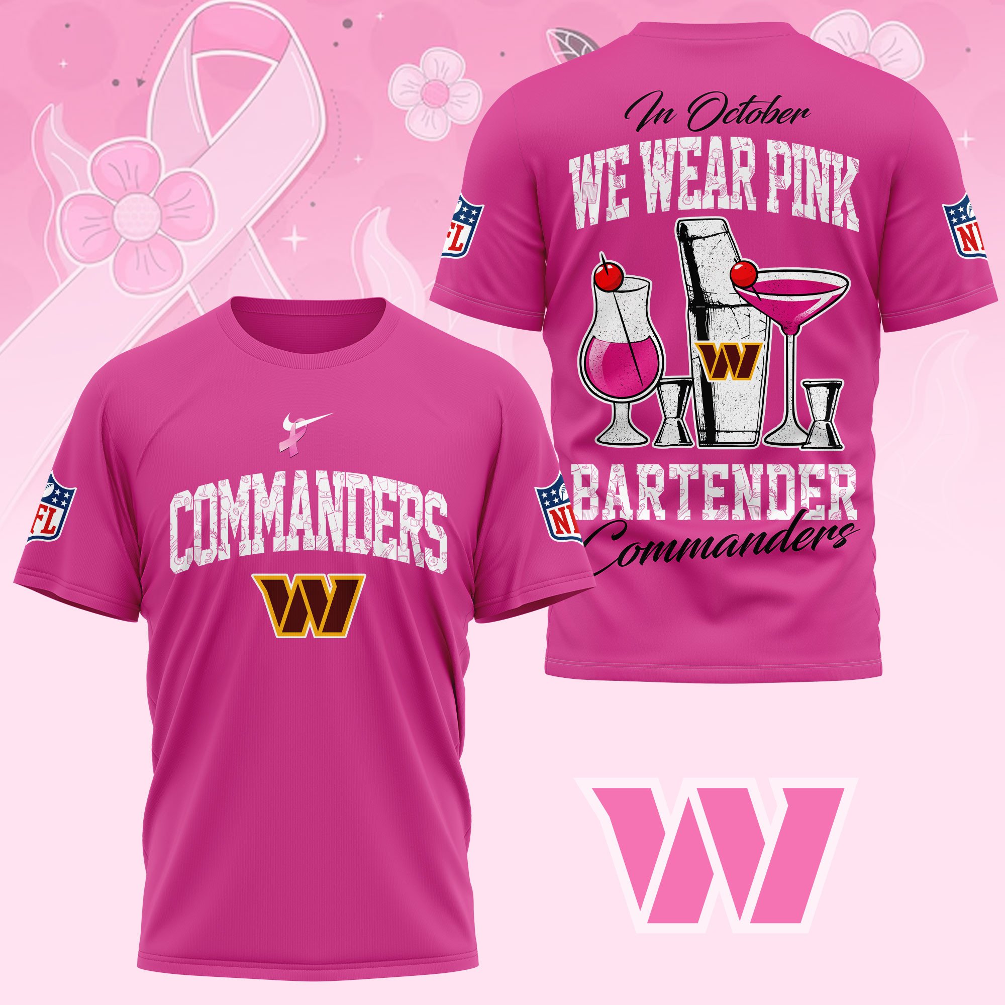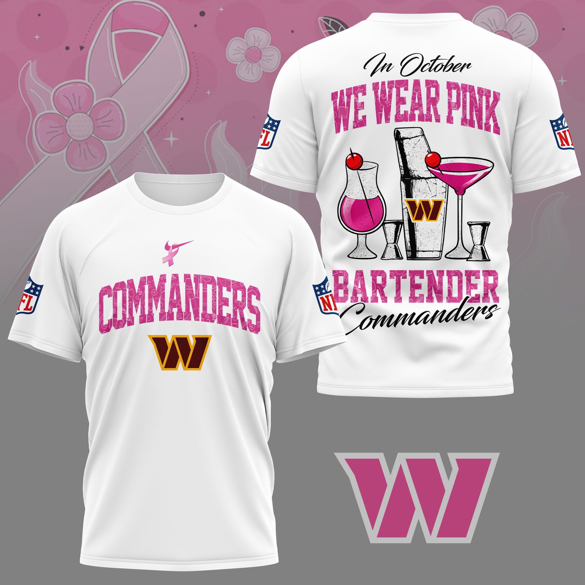 Washington Commanders |Premium NFL Bartender October Breast Cancer Awareness 3D Shirt