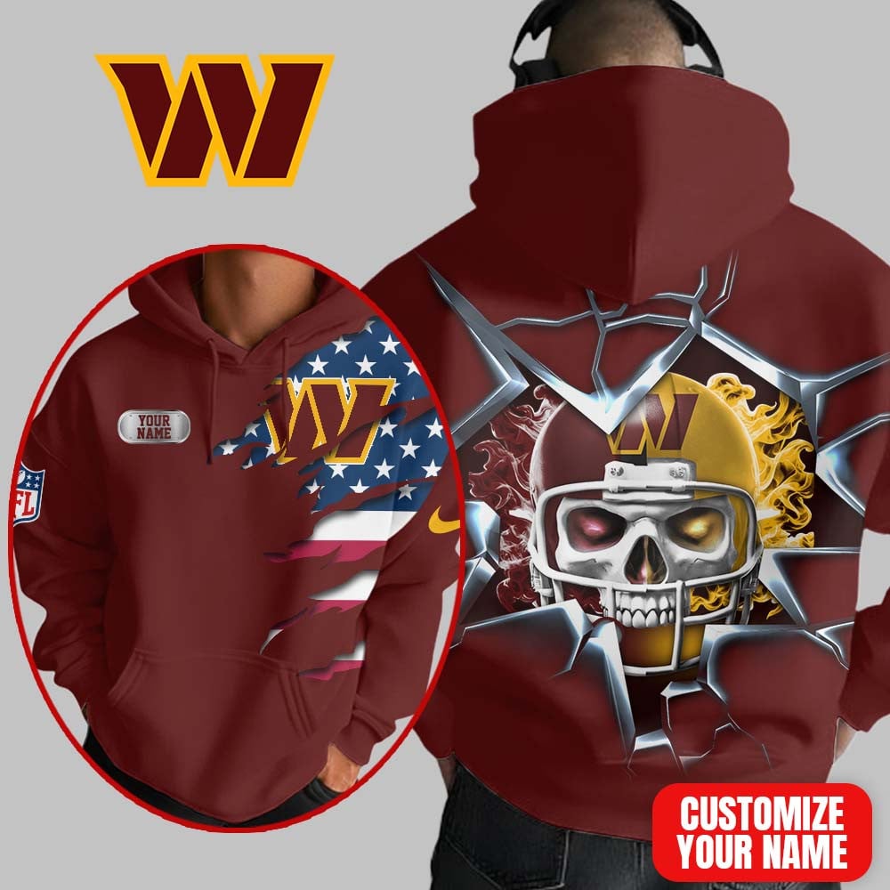 Washington Commanders | Premium NFL Customizable Skull Hoodie
