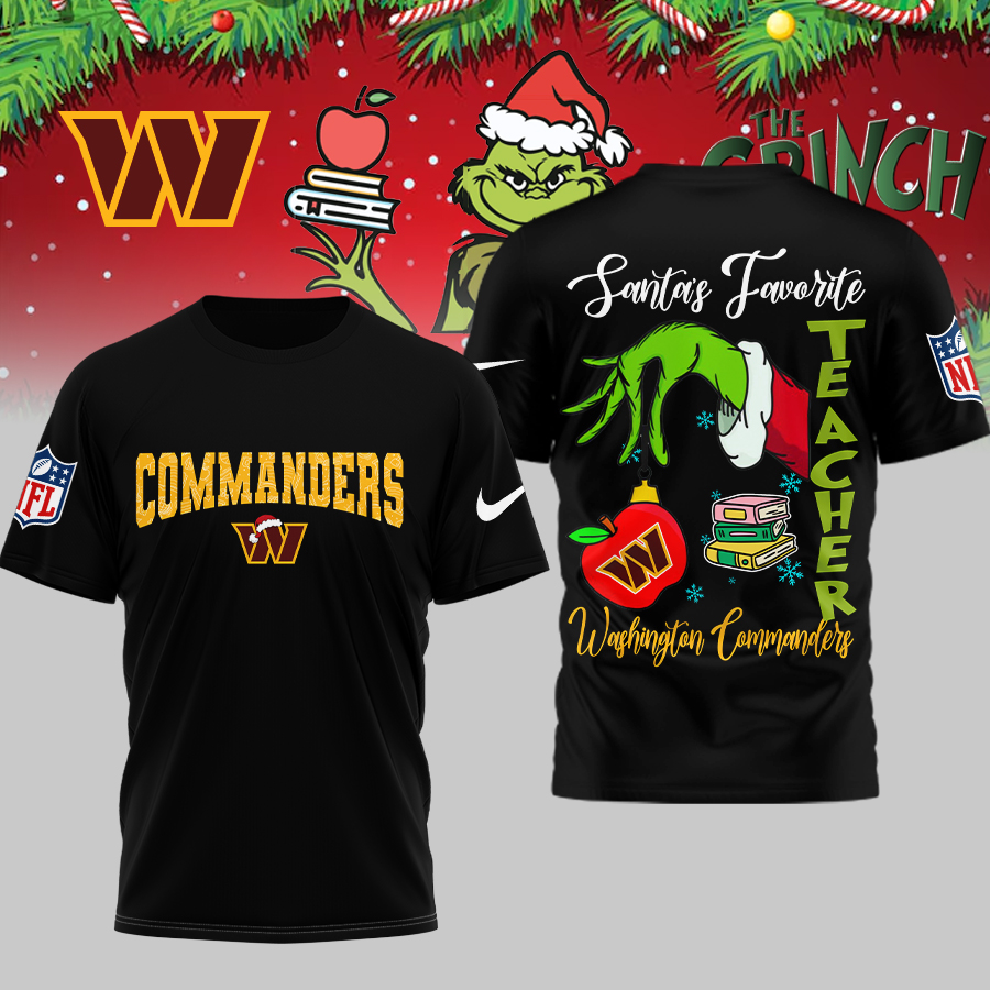 Washington Commanders | Premium NFL Festive Grinch Teacher 3D Shirt