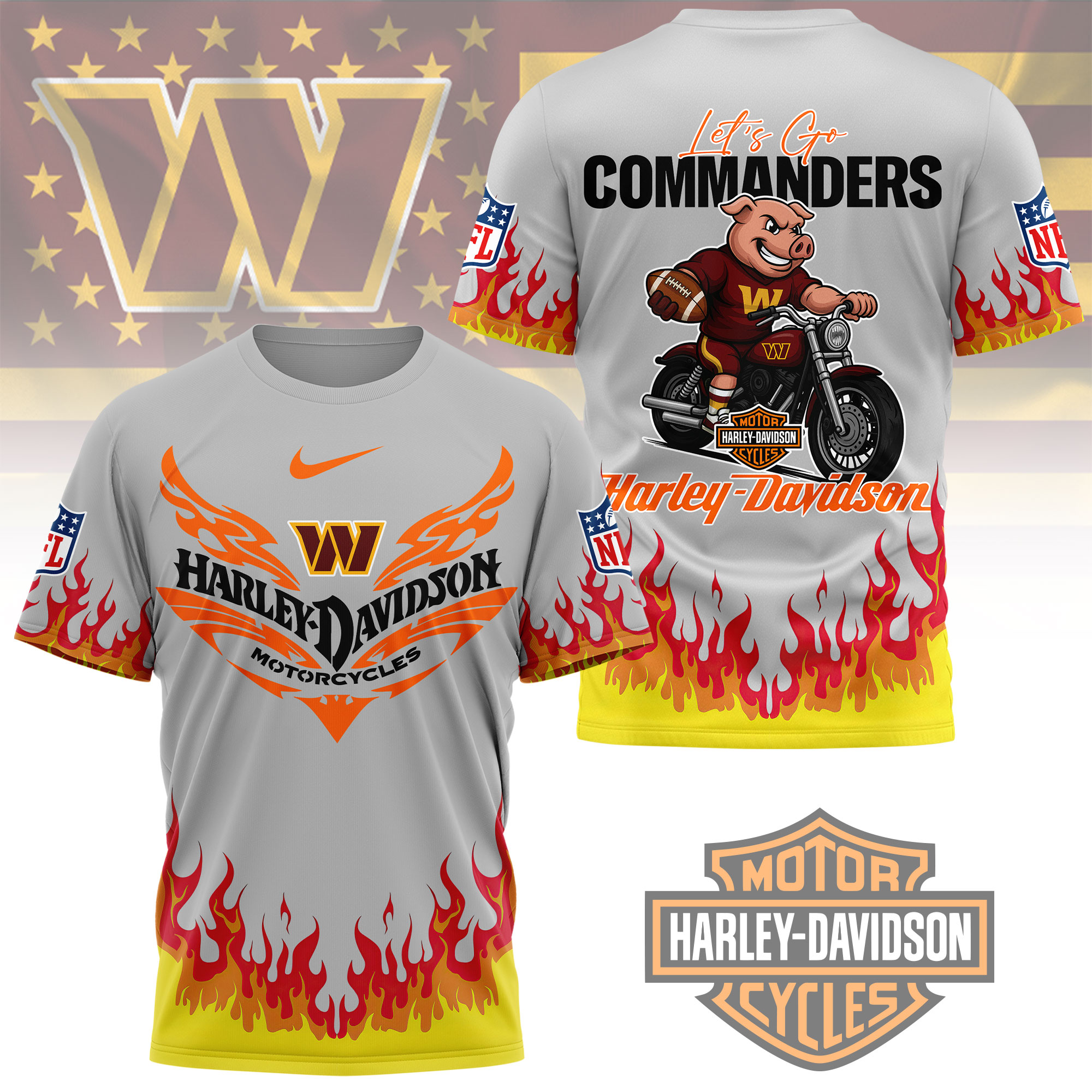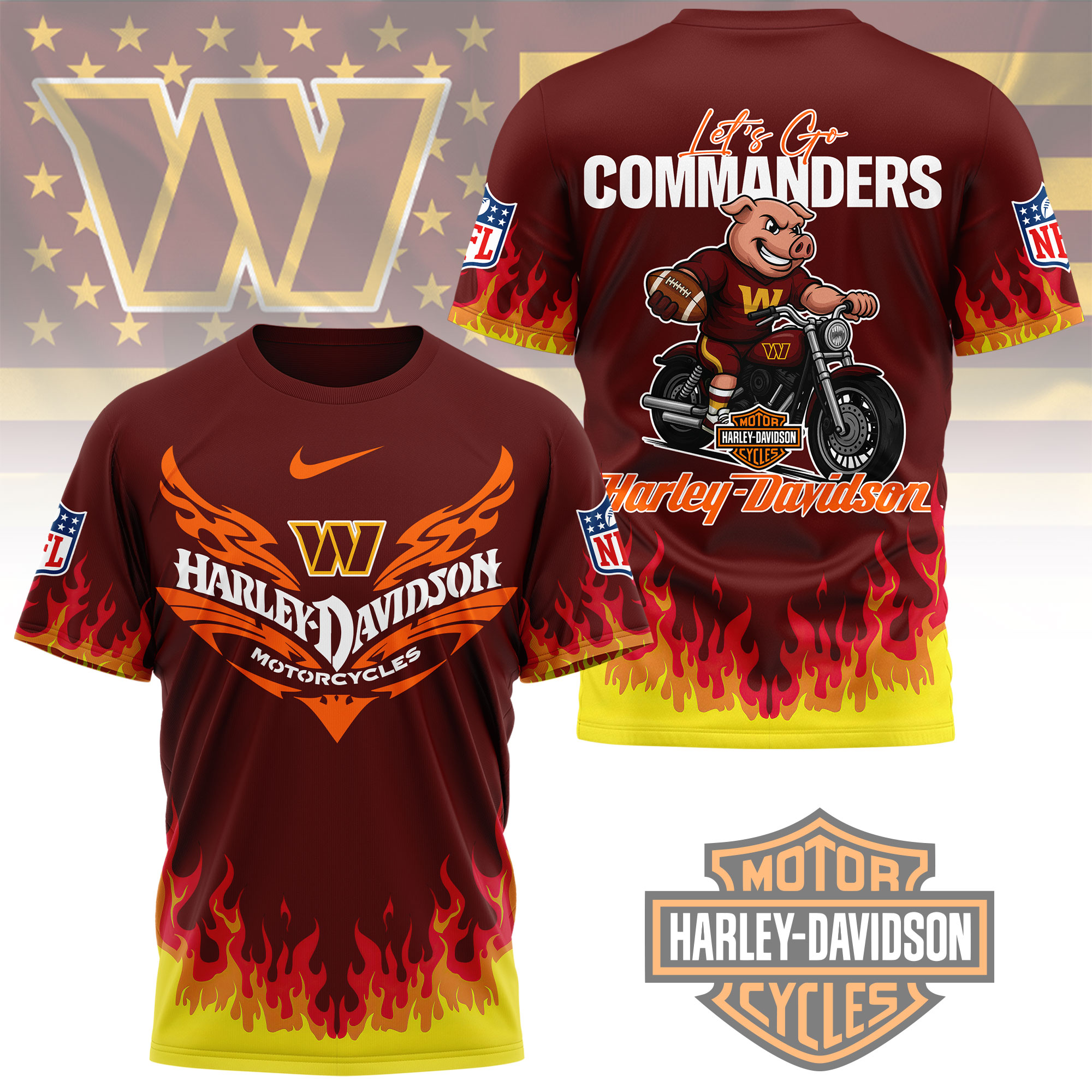 Washington Commanders | Premium NFL Harley Davidson Firewave 3D Shirt