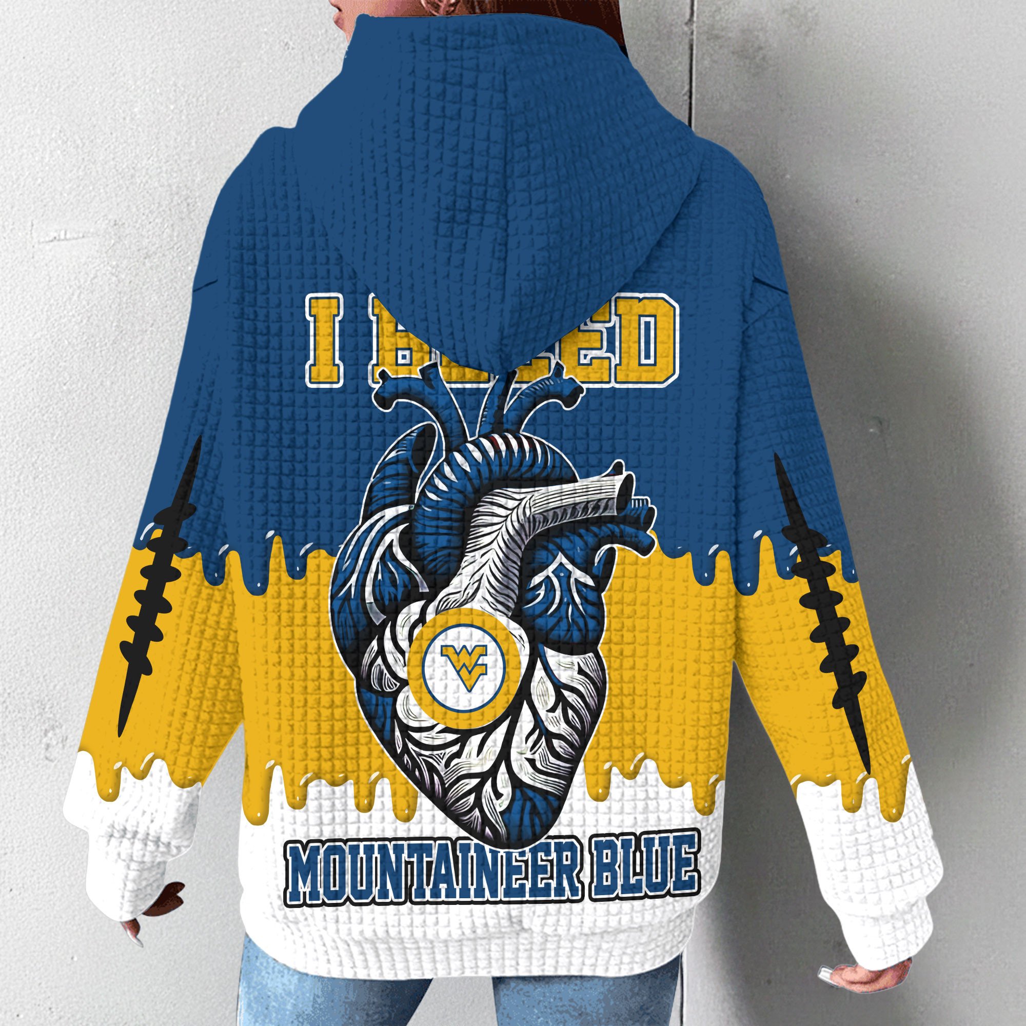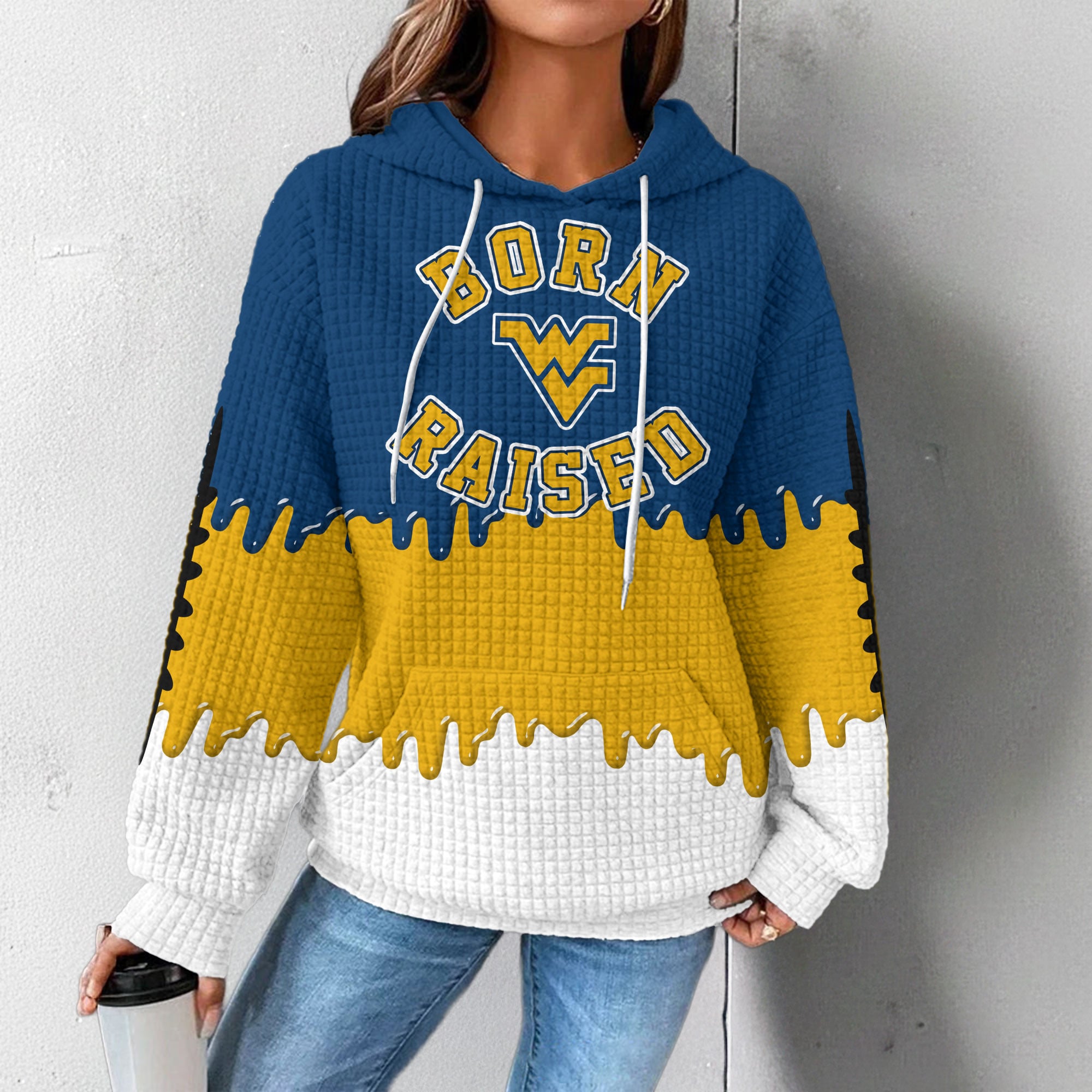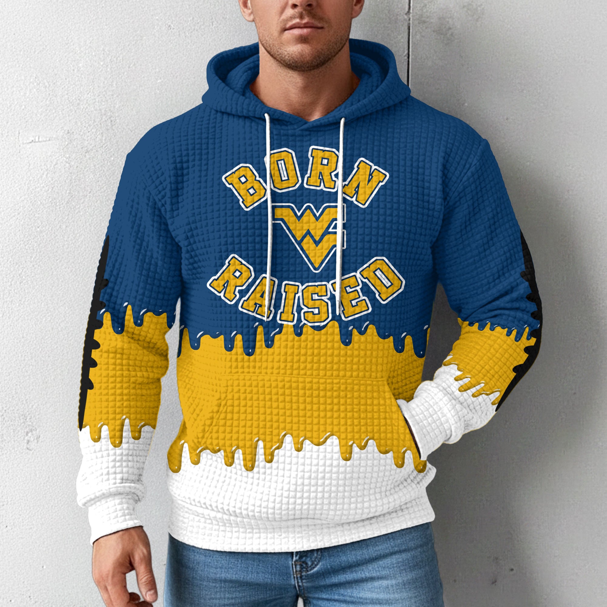 West Virginia Mountaineers | Premium NCAA Born and Raised Waffle Hoodie